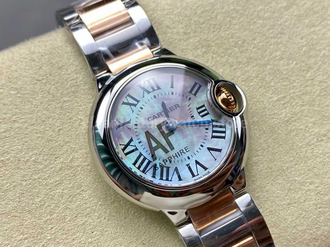 AF Factory Cartier Ballon Bleu W6920034 28mm Rose GoldSteel Roman Numerals Mother Of Pearl Dial