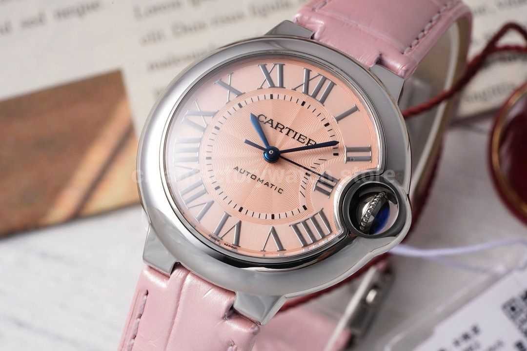 AF Factory Cartier Ballon Bleu WSBB0031 33mm Steel Leather Strap Roman Numerals Pink Dial