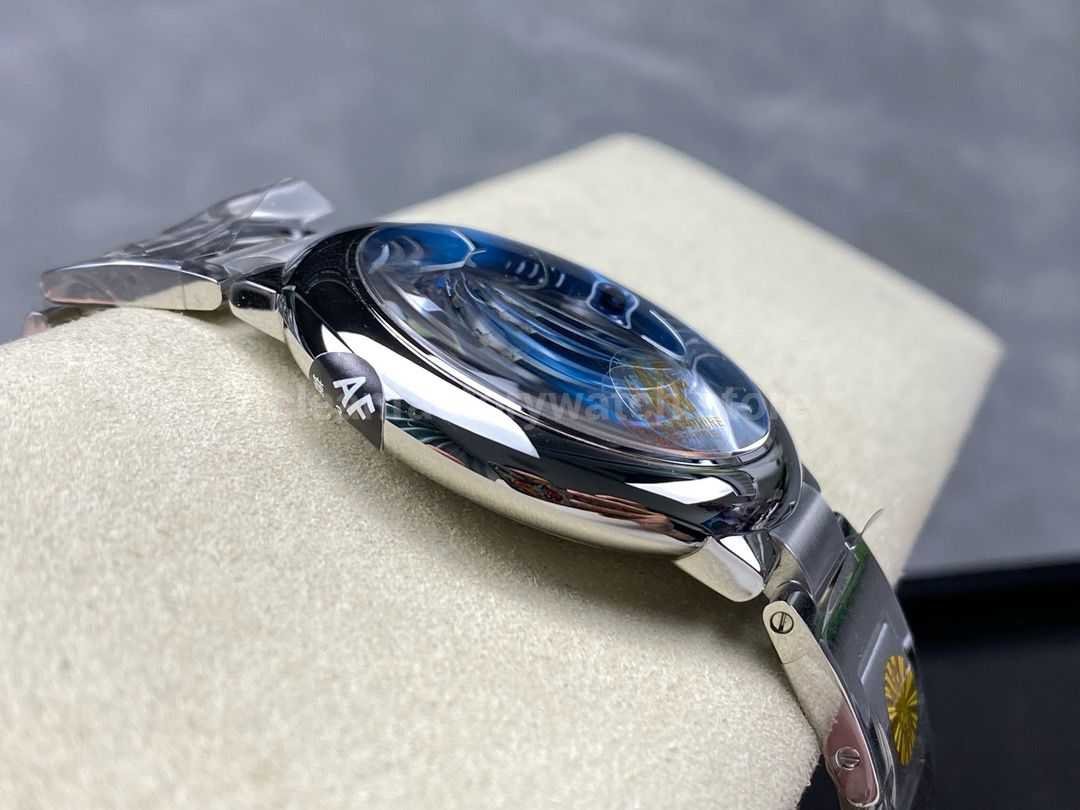 The watch features a 42mm x 13mm case made from 316L stainless steel. AF’s skilled watchmakers have polished the case to perfection, creating a lustrous finish that radiates brilliance. The level of refinement is comparable to that of the original, flawlessly capturing the unique elegance of the Ballon Bleu series. From the gentle curves of the case to the distinctive crown guard design, every detail reflects AF’s dedication to replicating the original’s charm.