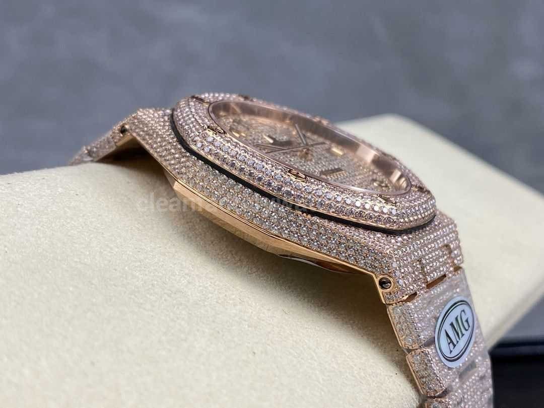 To create the ultimate full diamond-set 15400, AMG Factory went through countless trials and refinements, perfecting the intricate diamond-setting technique to ensure each stone is flawlessly integrated and securely in place. From diamond selection and cutting to setting and polishing, every step is executed with meticulous attention to detail, guaranteeing the most opulent visual and tactile experience.