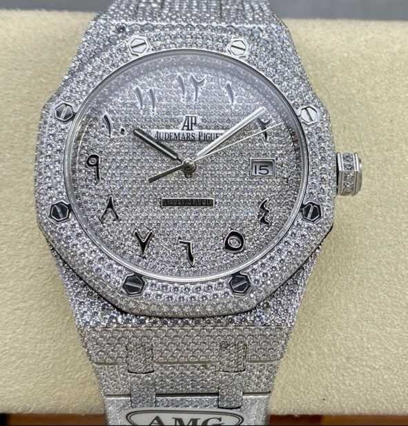 To create the ultimate full diamond-set 15400, AMG Factory went through countless trials and refinements, perfecting the intricate diamond-setting technique to ensure each stone is flawlessly integrated and securely in place. From diamond selection and cutting to setting and polishing, every step is executed with meticulous attention to detail, guaranteeing the most opulent visual and tactile experience.