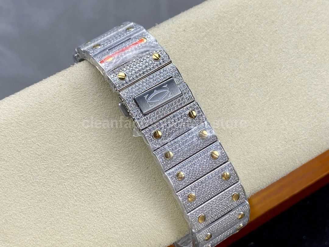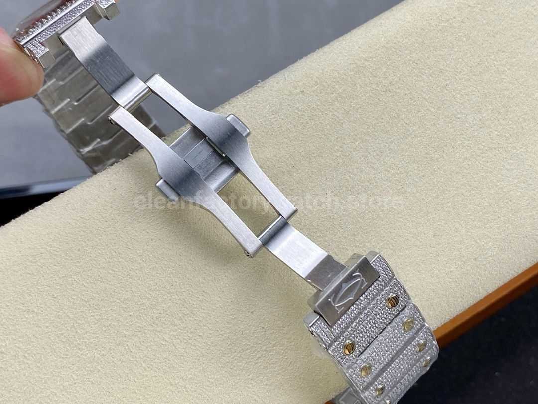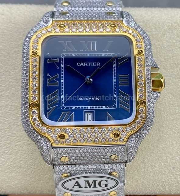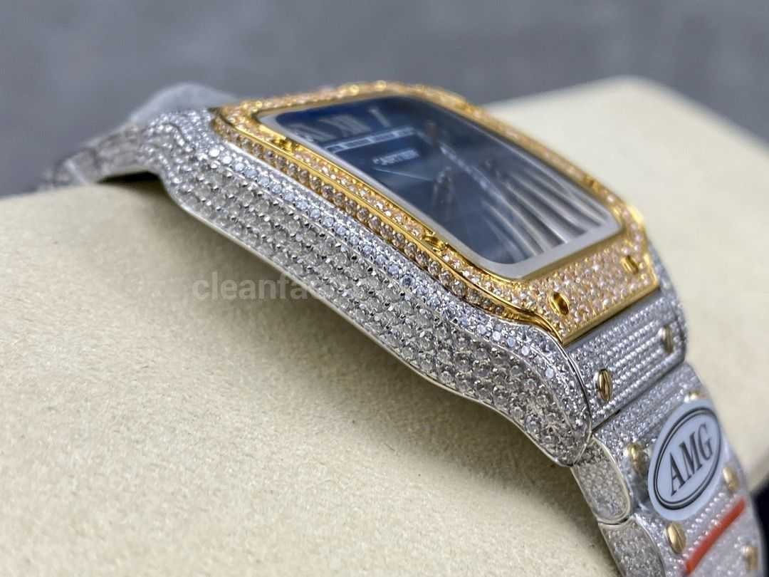 AMG Factory Cartier Full Diamond Santos 40mm Gold Diamond Steel Roman Number Blue Dial