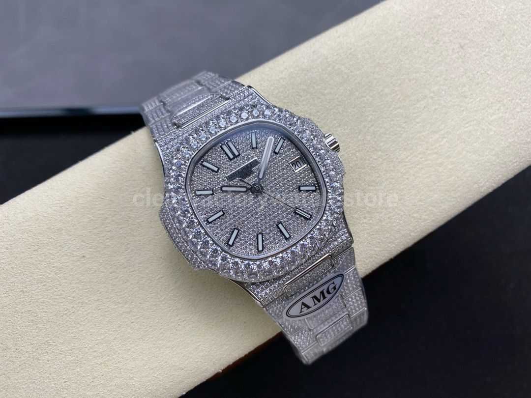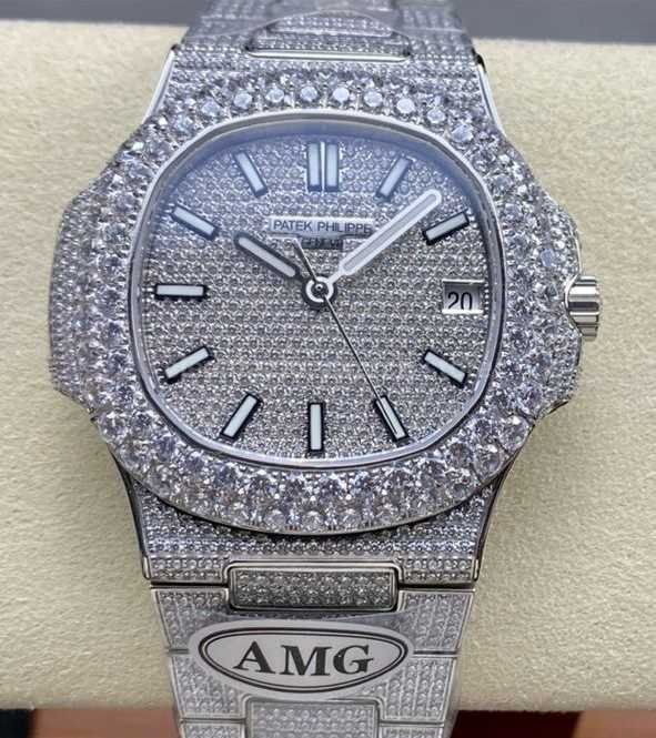 Expertly crafted by AMG, the Patek Philippe Nautilus 5711 full diamond edition now features a dazzling double-row diamond bezel. Merging haute horology with high jewelry aesthetics, this masterpiece exudes refined elegance and exceptional prestige — a true symbol of success and taste.
