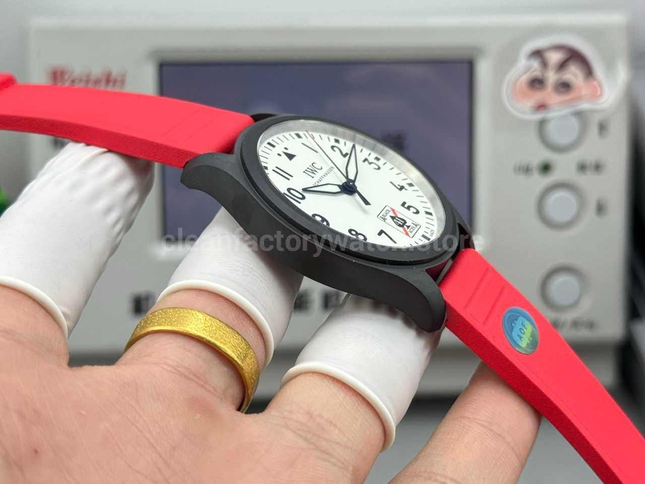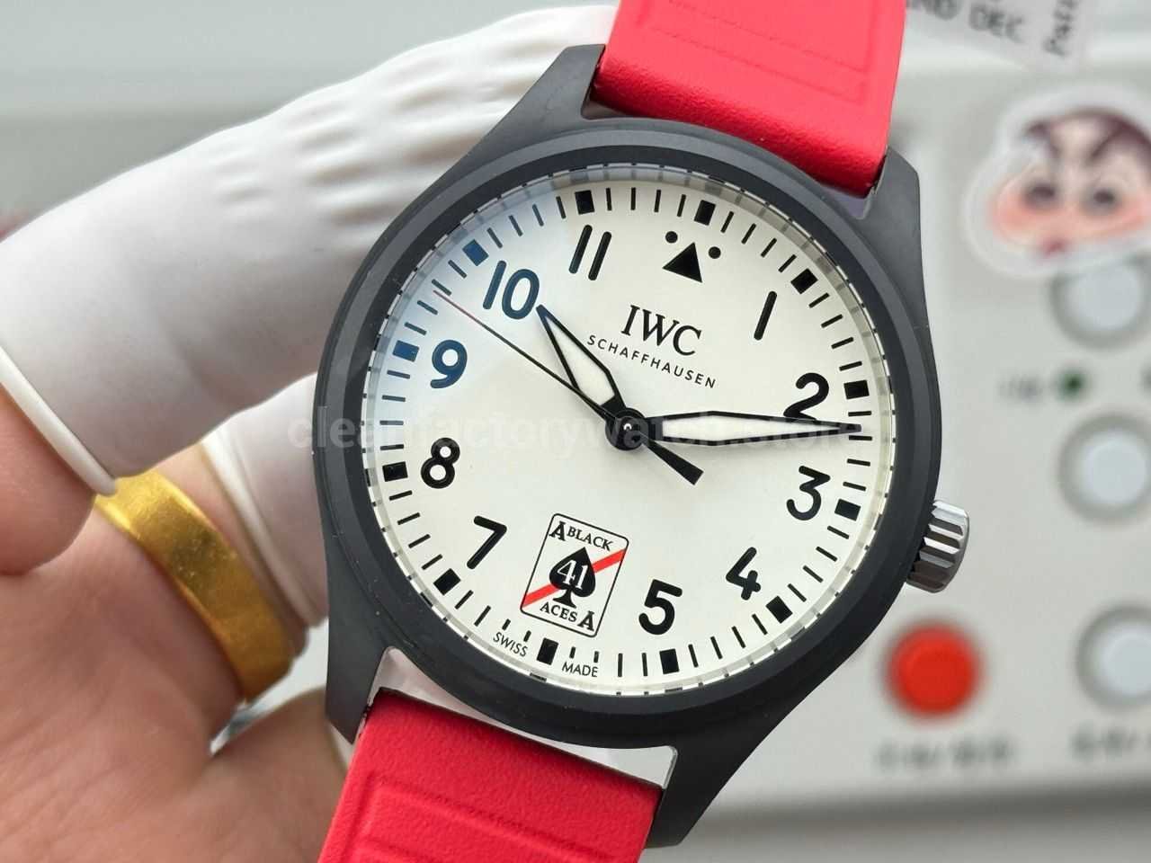 AOF Factory IWC Pilot IW326905 41mm Ceramic Red Rubber Strap White Dial