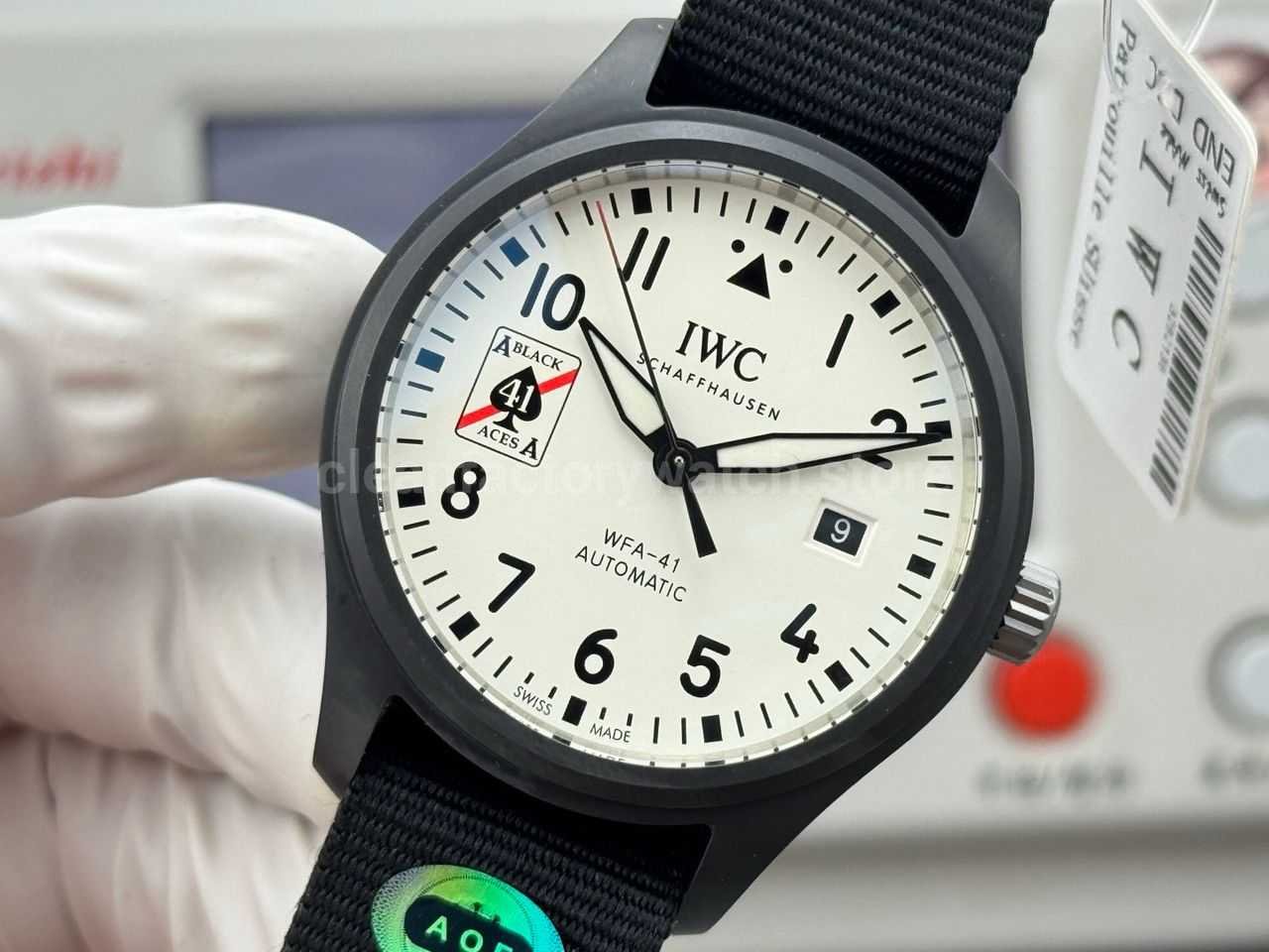 AOF Factory IWC Pilot IW326905 41mm Ceramic Textile Strap White Dial