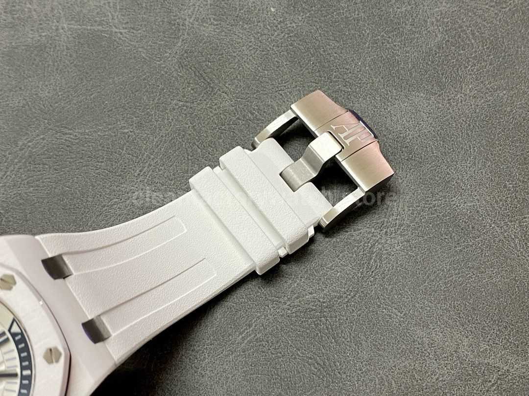 APS Factory Audemars Piguet Royal Oak Offshore Selfwinding 42mm 15707CB.OO.A010CA.01 White Ceramics Rubber Strap Silver Dial
