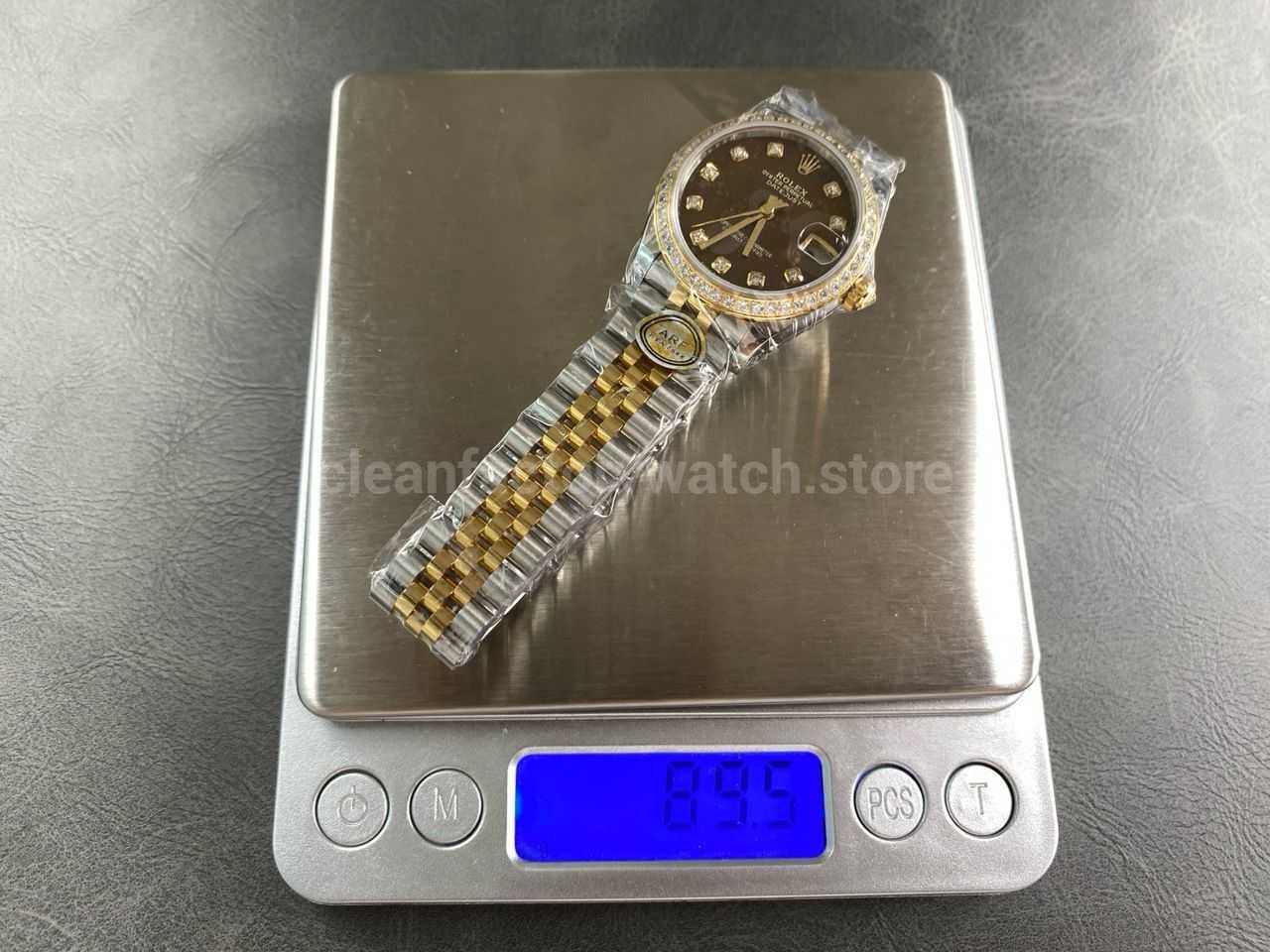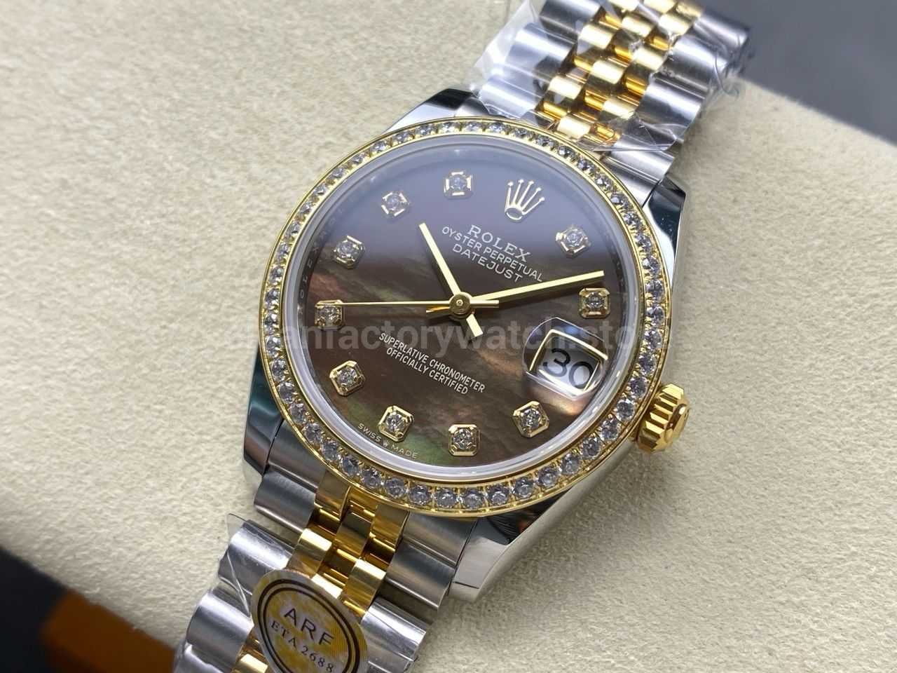 ARF Factory Counterweight Rolex Datejust 278383RBR-0024 31mm Yellow Gold Diamond Bezel Black Mother of Pearl Dial