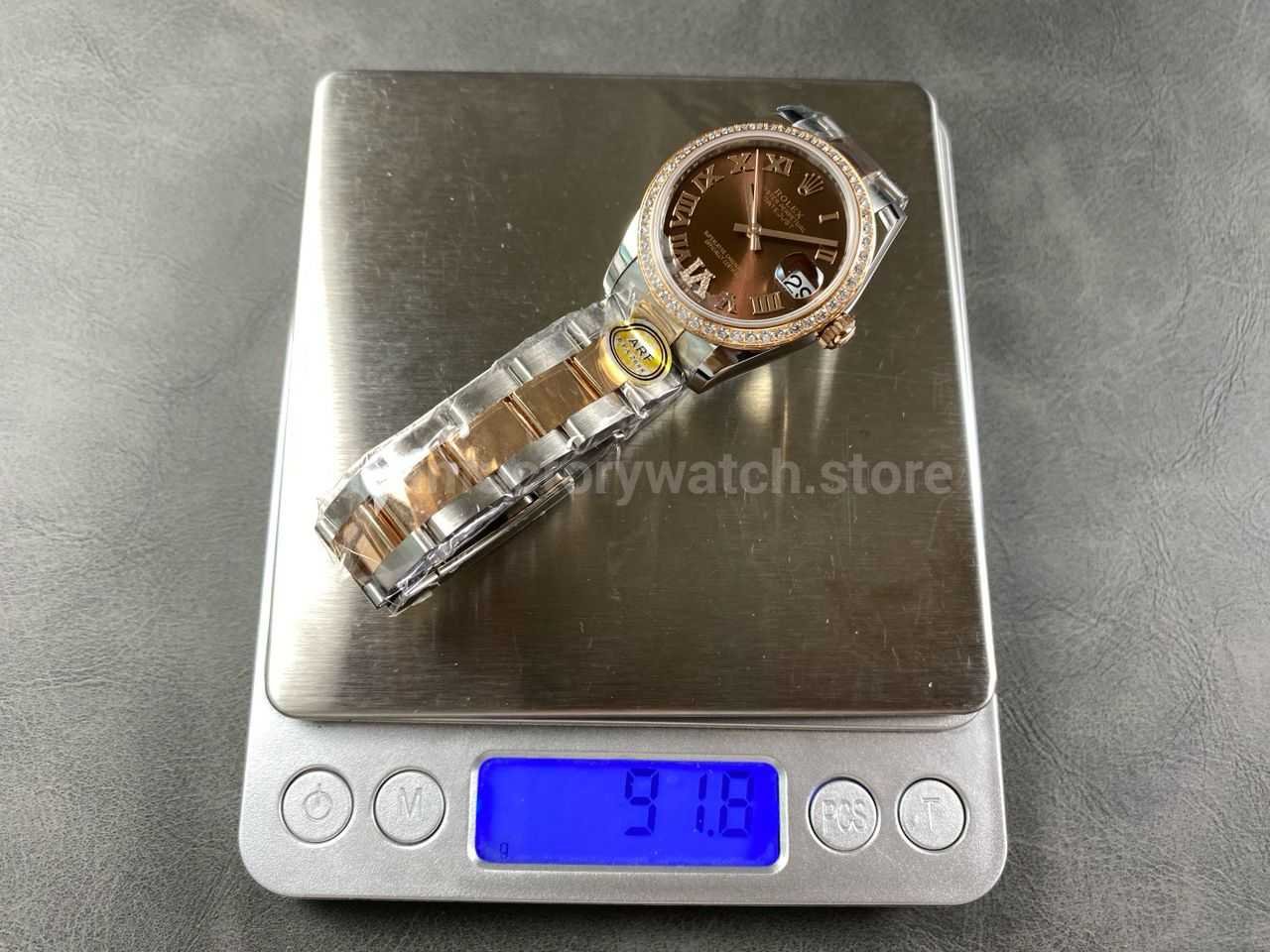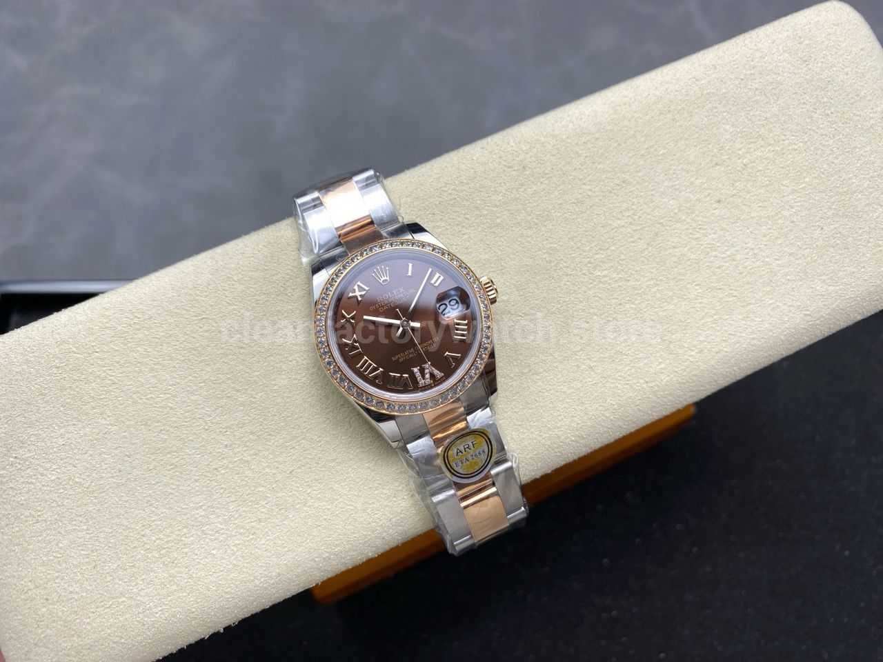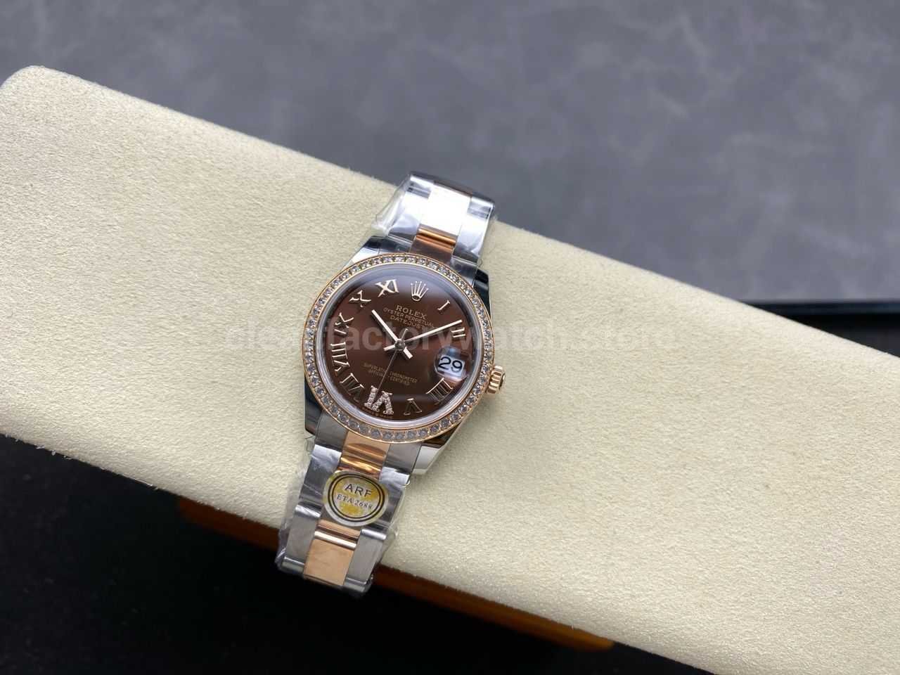 ARF Factory Counterweight Rolex Datejust Oyster 278381RBR-0005 31mm Rose Gold Diamond Bezel Roman VI Brown Dial