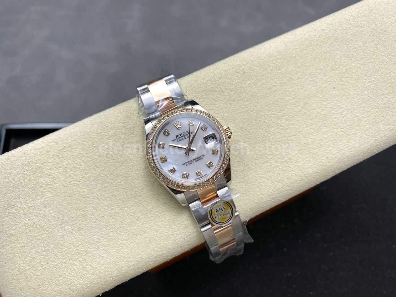 ARF Factory Counterweight Rolex Datejust Oyster 278381RBR-0025 31mm Rose Gold Diamond Bezel Mother of Pearl Dial