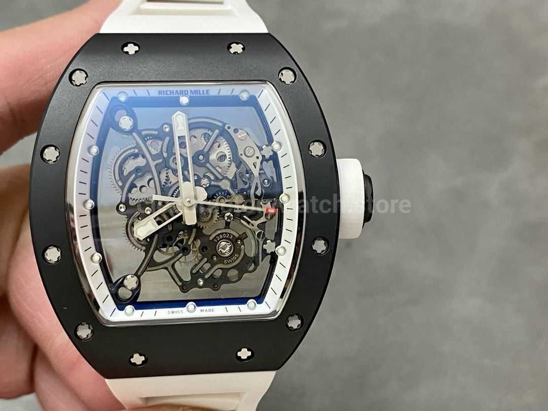 BBR Factory Richard Mille RM055 Black Ceramics White Rubber Strap White Skeletonized Dial