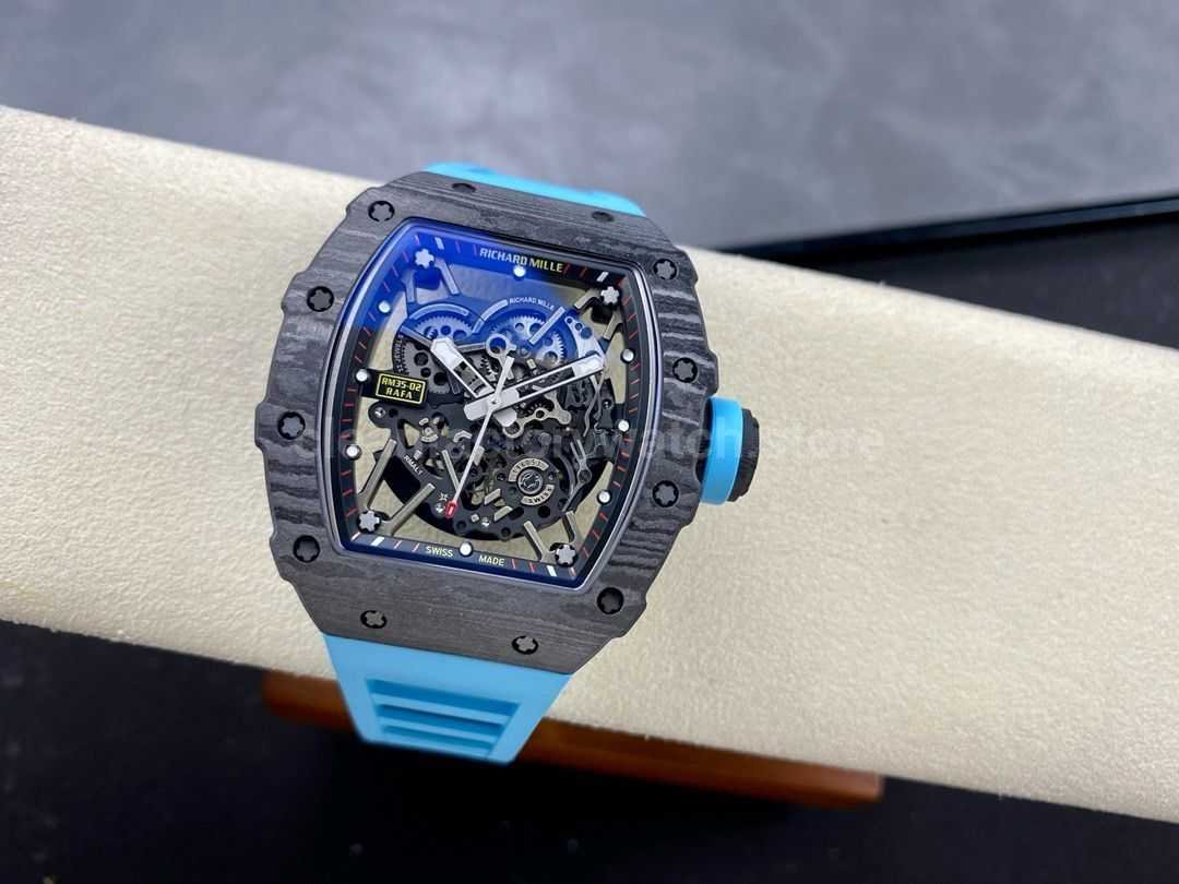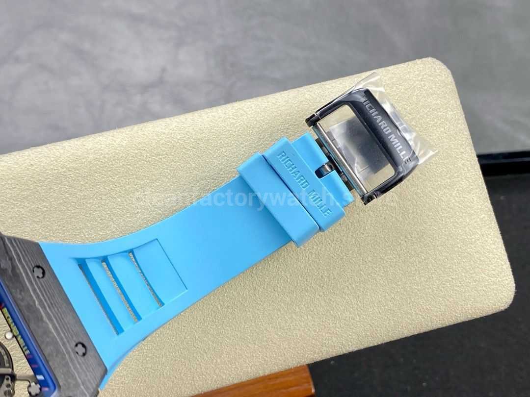 BBR Factory Richard Mille RM35-02 Black Carbon Fiber Light Blue Rubber Strap Black Skeletonized
