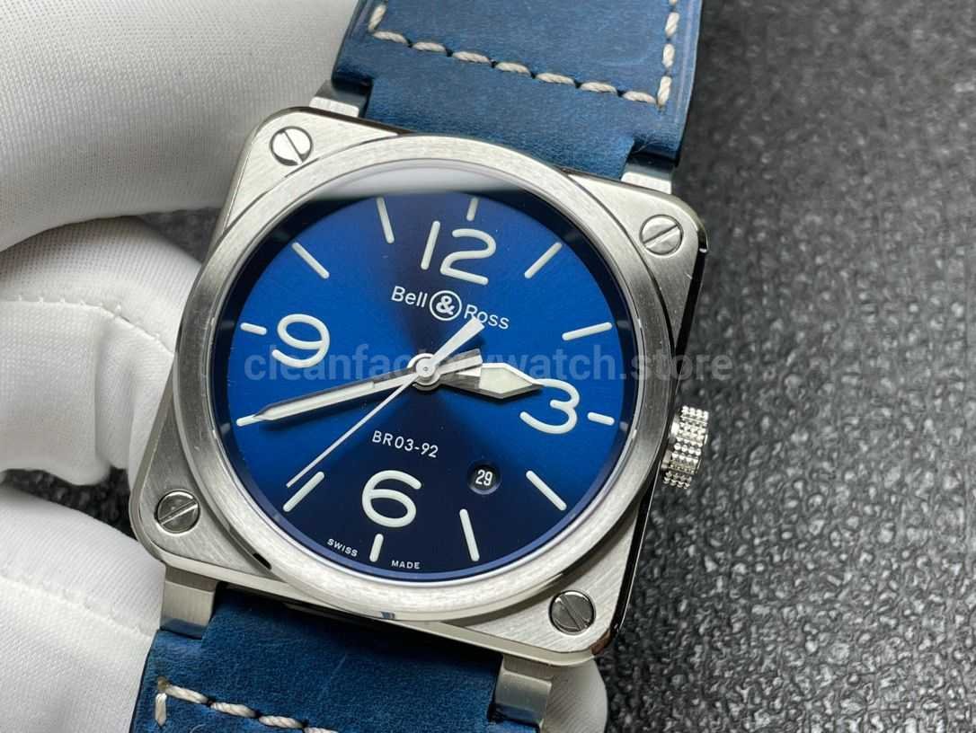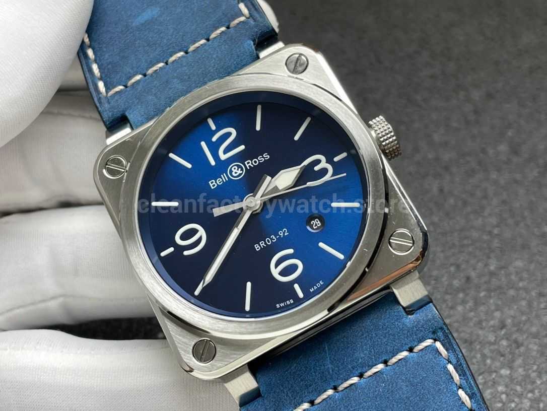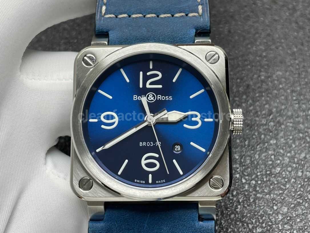 BRF Factory Bell & Ross BR 03 BR0392-BLU-STSCA 42mm Steel Leather Strap Blue Dial