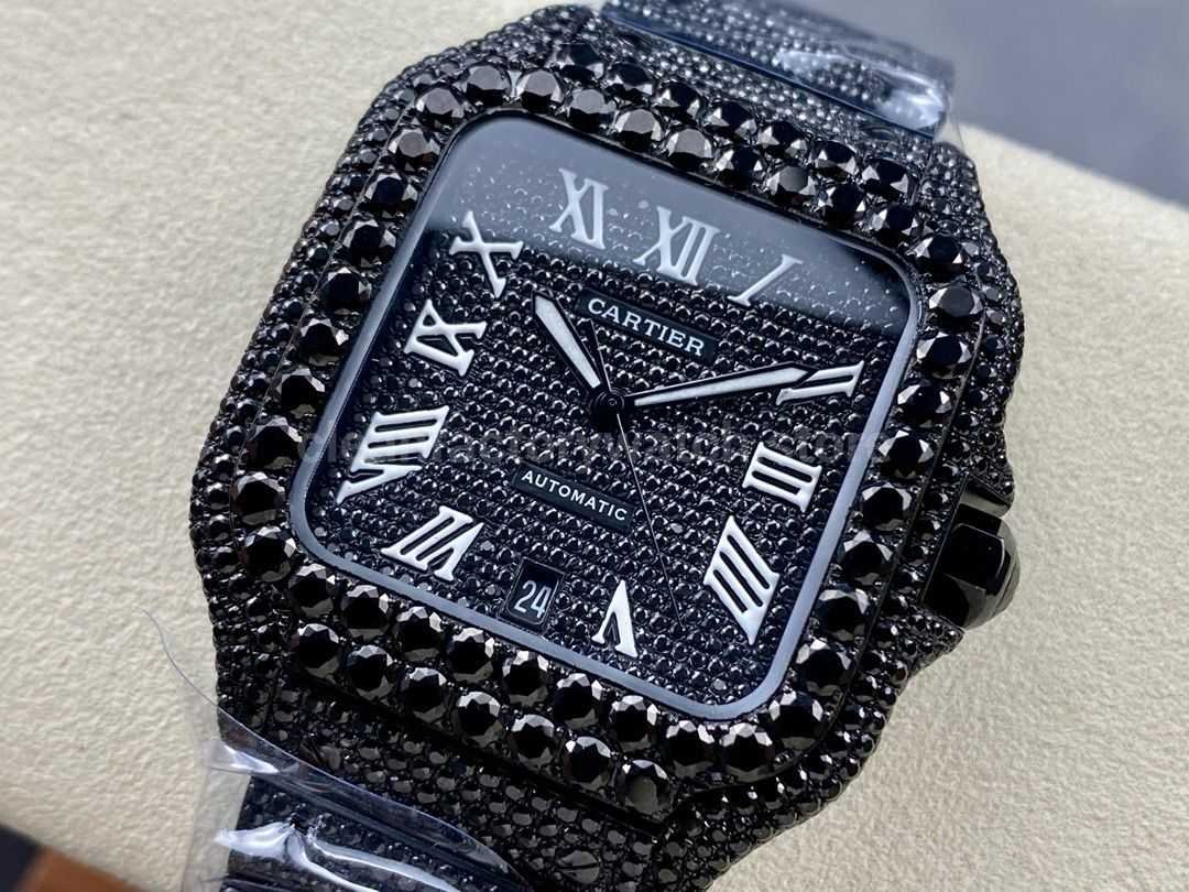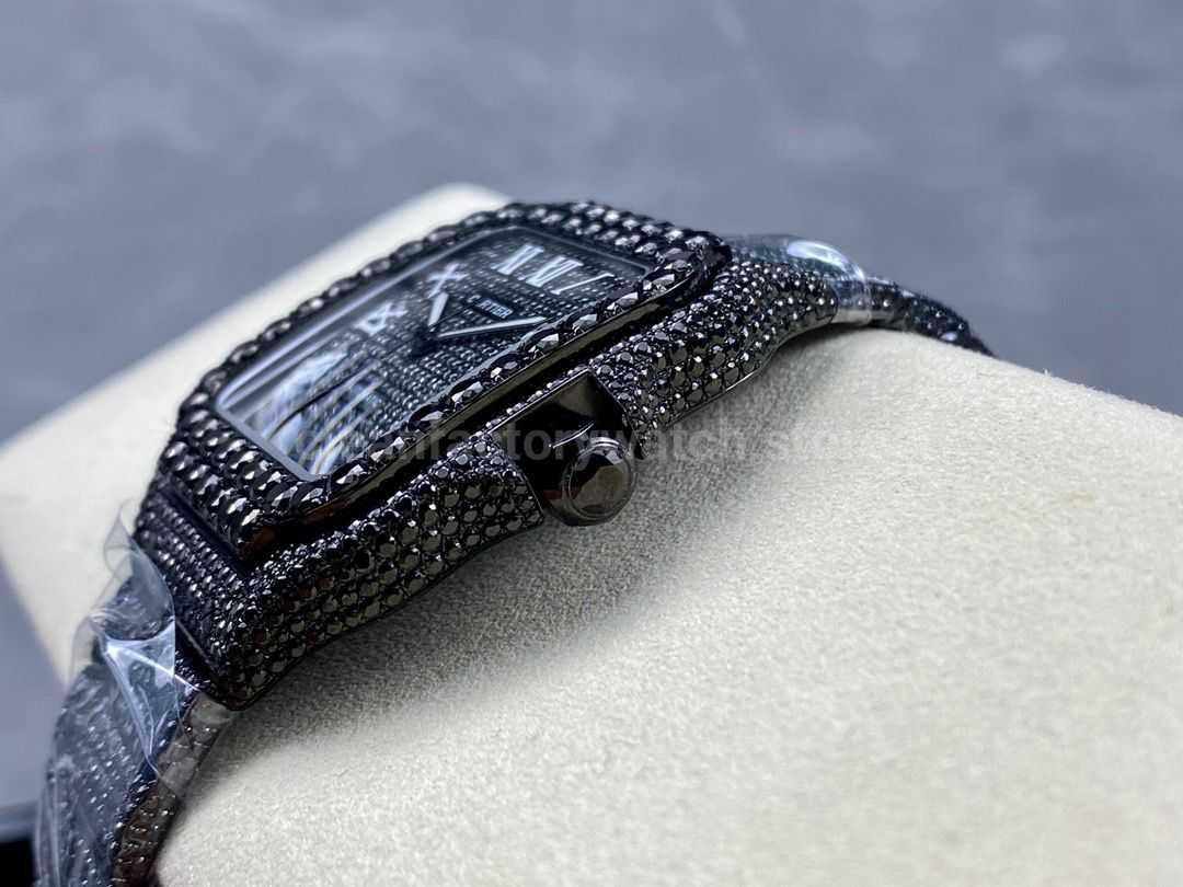 Cartier Santos Modification and customization moissanous diamonds Black Dial