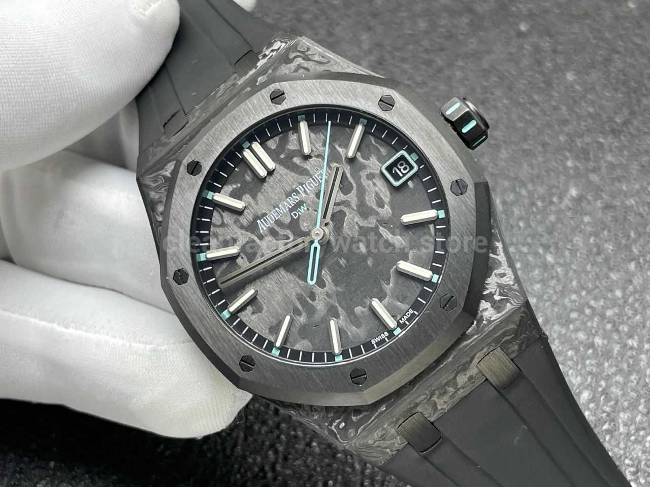 Compared with traditional steel Royal Oak watches that often weigh over 150 grams, the carbon structure significantly reduces wrist fatigue while enhancing daily comfort.