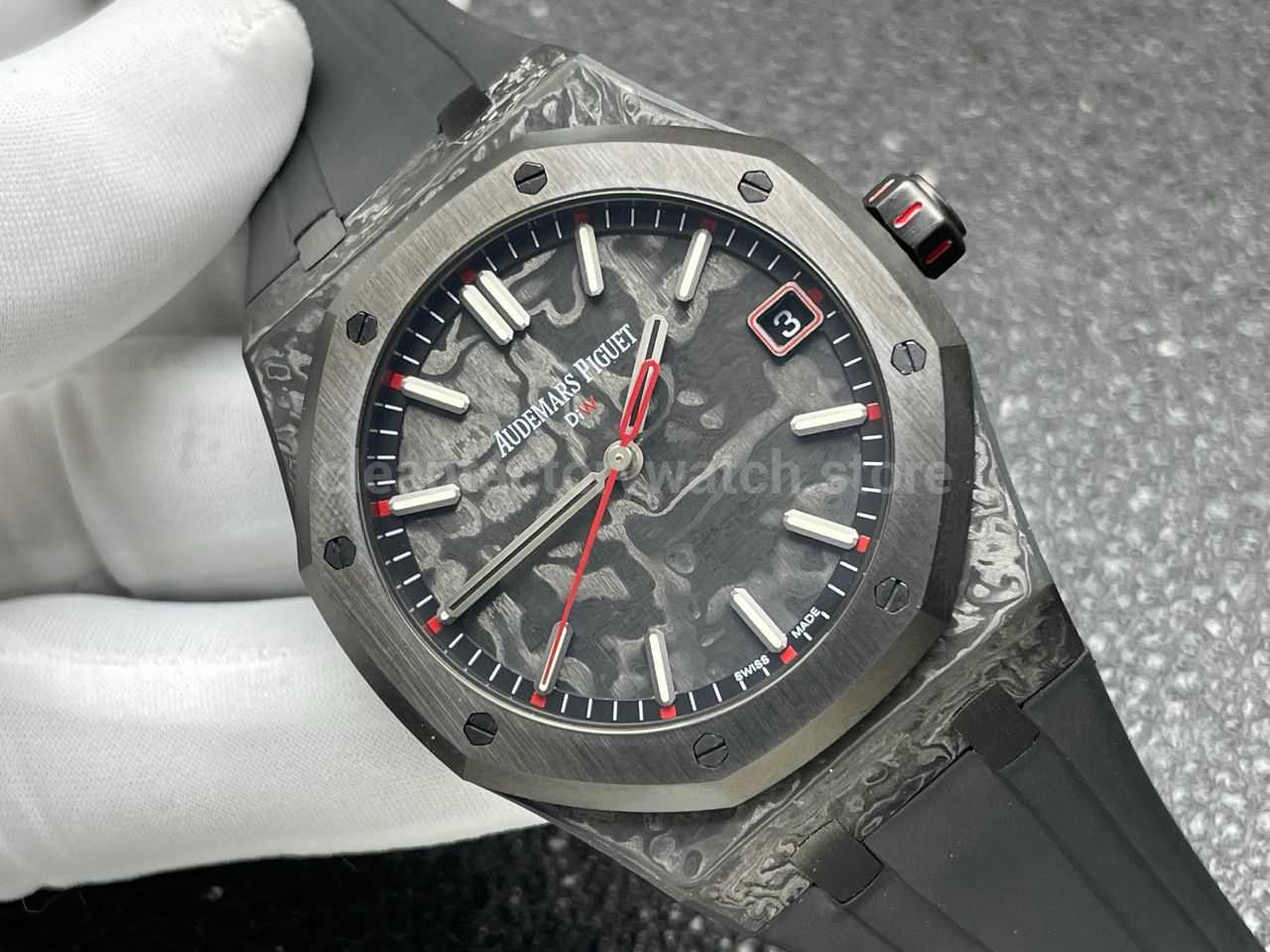 Compared with traditional steel Royal Oak watches that often weigh over 150 grams, the carbon structure significantly reduces wrist fatigue while enhancing daily comfort.