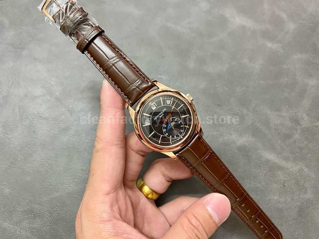 GR Factory Patek Philippe Annual Calendar 5205R-010 Rose Gold Leather Strap Black Dial