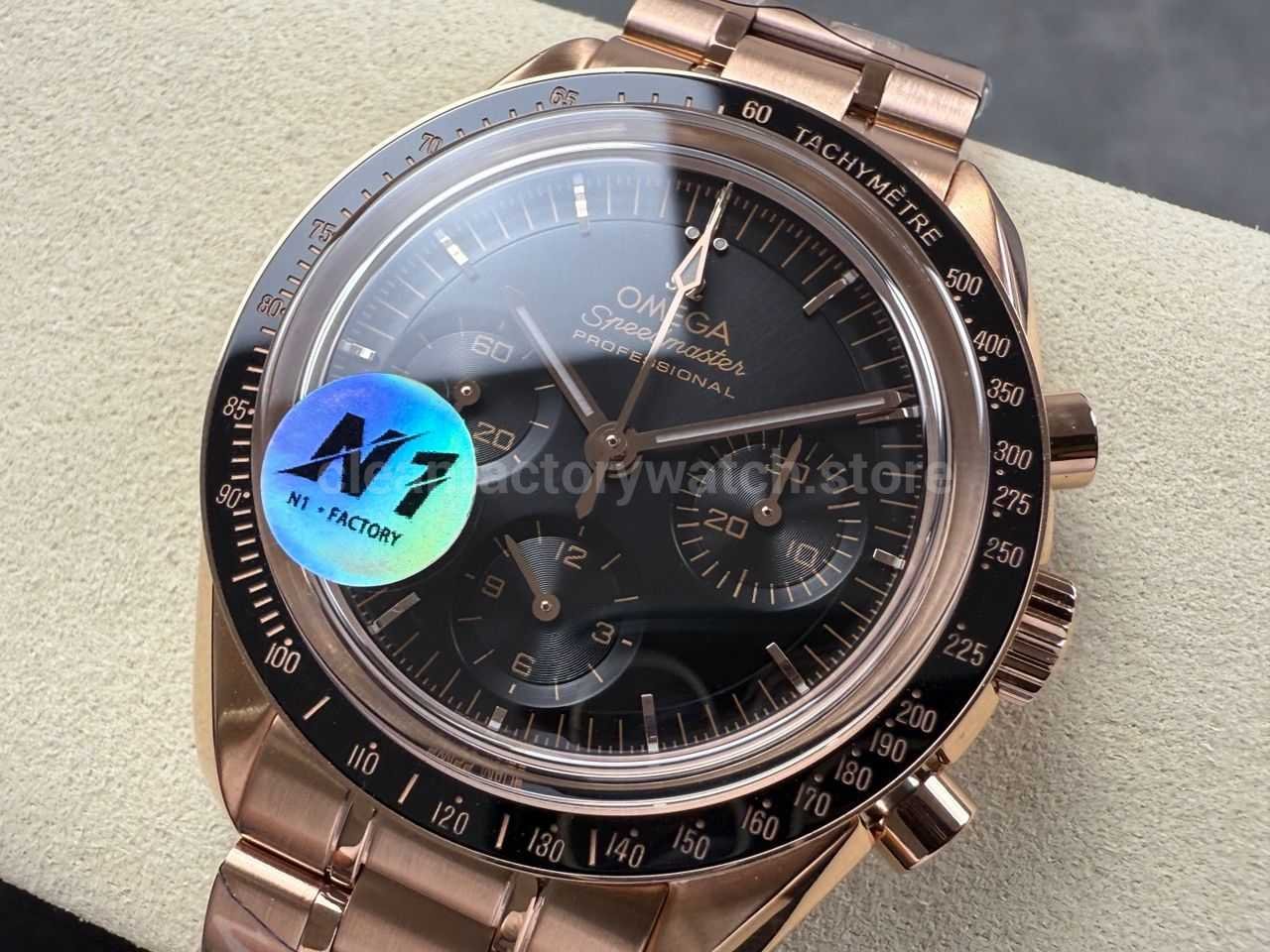N1 Factory Omega Speedmaster Professional Moonwatch 310.63.42.50.02.001 Rose Gold Black Dial