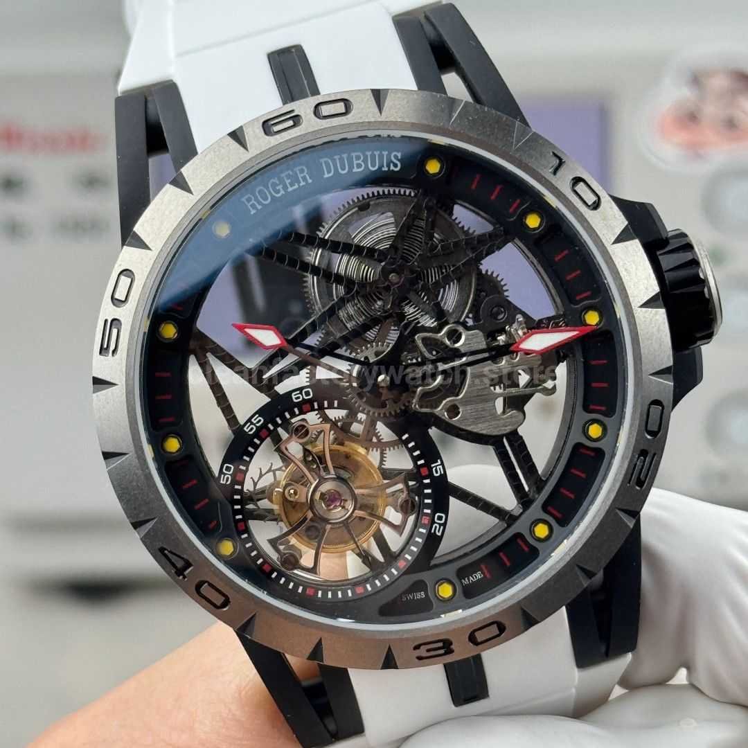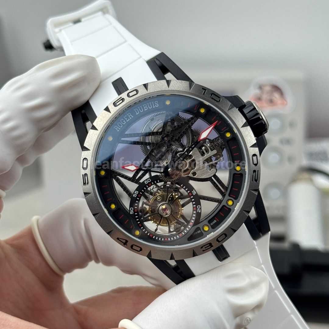 NEW Factory Roger Dubuis Excalibur Spider RDDBEX0479 Tourbillon 45mm Titanium White Rubber Strap Black Dial
