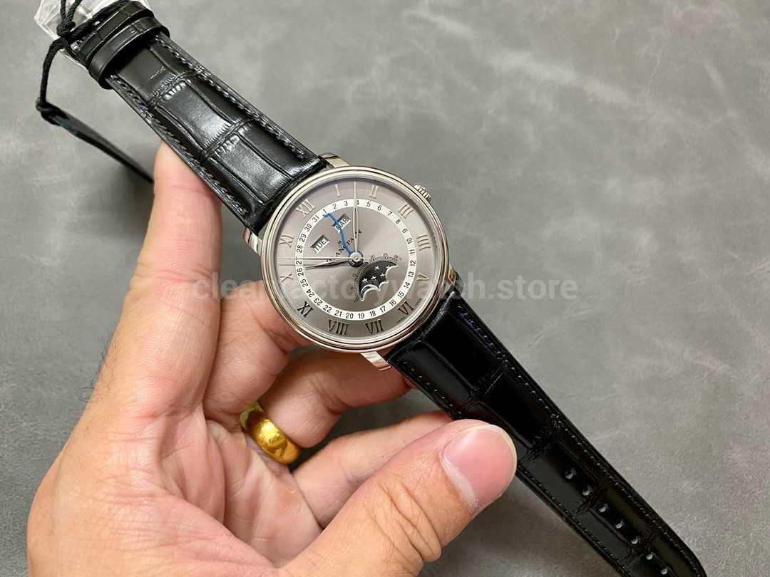 OM Factory Blancpain Villeret Quantième Complet 6654-1113-55B 40mm Steel Leather Strap Roman Numerals Grey Dial