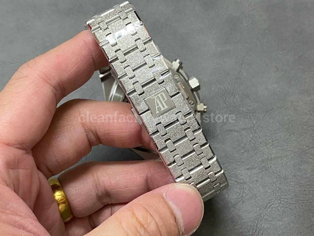 OMF Factory Frosted Audemars Piguet Royal Oak Chronograph 26240BC.GG.1324BC.02 41mm Full Frosted White Gold Blue Dial