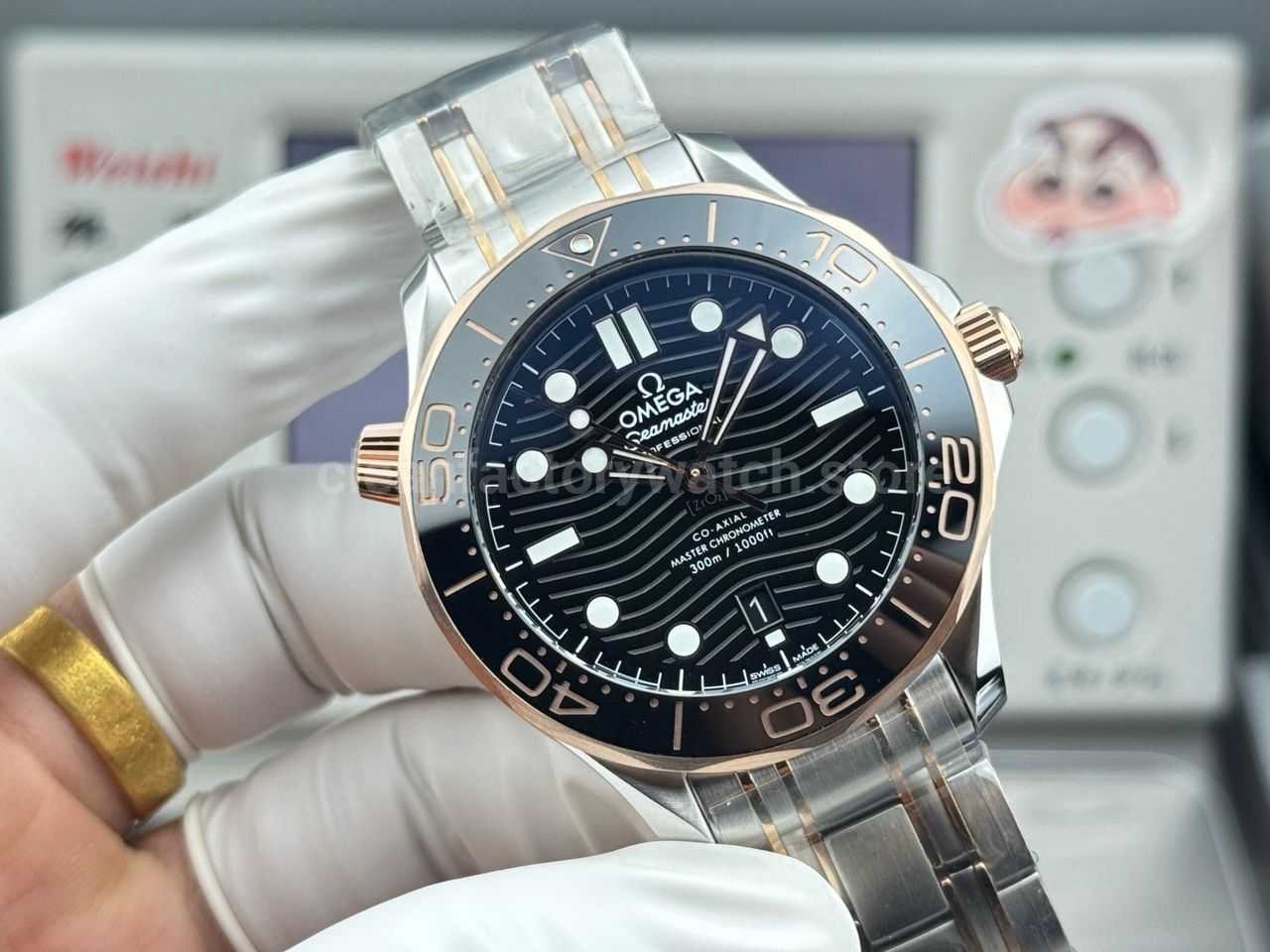 OR Factory Omega Seamaster Diver 300M 210.20.42.20.01.001 42mm Half Rose Gold Black Dial