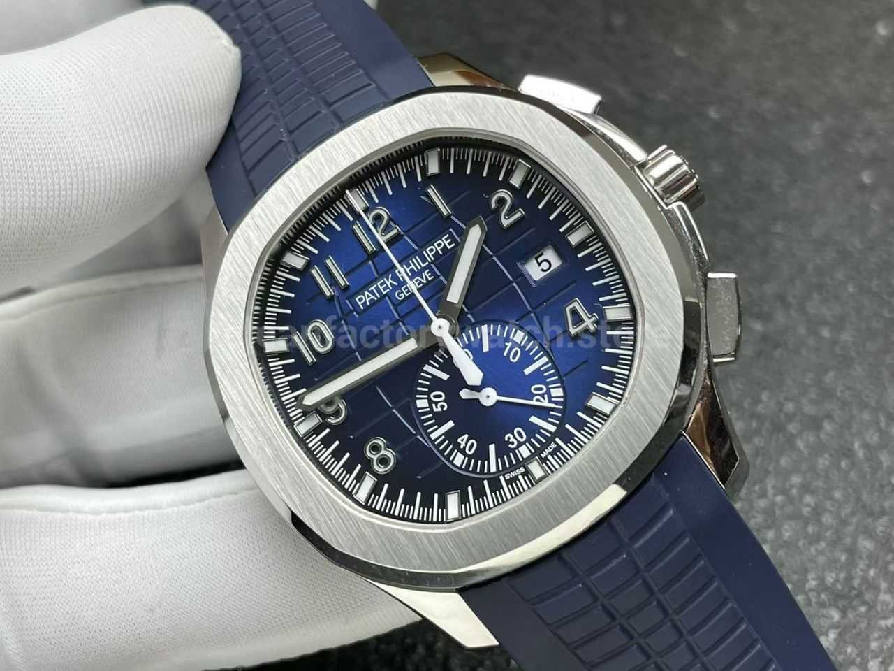 P1 Factory Patek Philippe Aquanaut 5968G-001 42mm White Gold Blue Rubber Strap Arabic Numerals Blue Dial