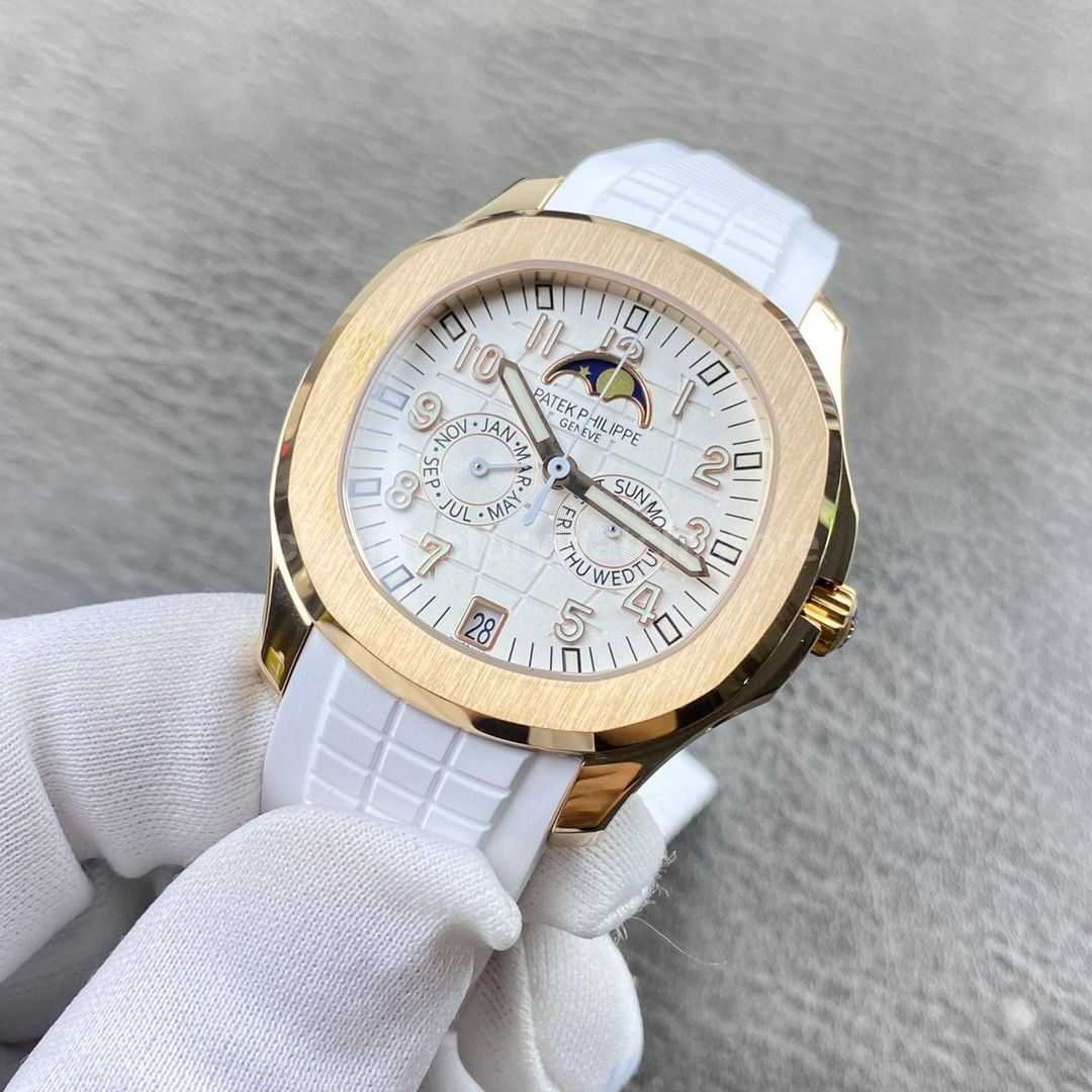 PP+ Factory Patek Philippe Aquanaut 5261R 40mm Rose Gold White Rubber Strap White Dial