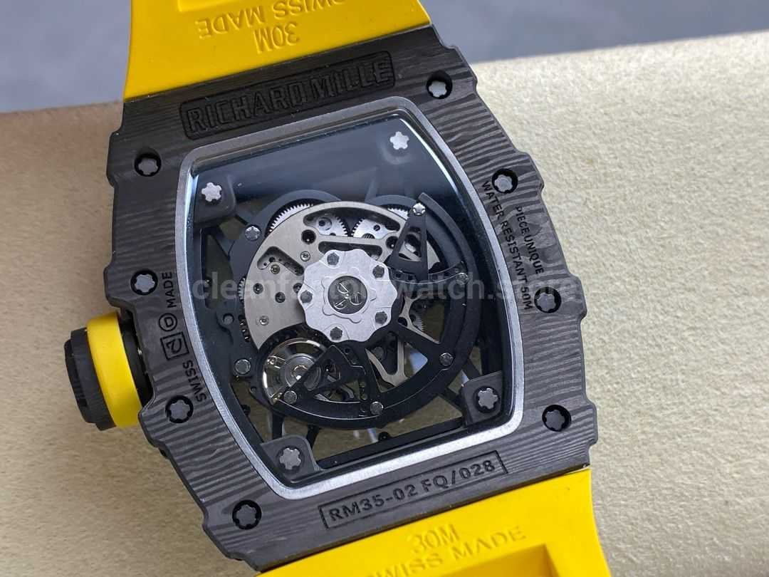 R7 Factory proudly presents the RM35-02, hailed as a game-changing replica that redefines the ceiling of the Richard Mille homage world. This model features an unprecedented level of detail, function, and structural accuracy, boasting the only true-to-original movement on the market.