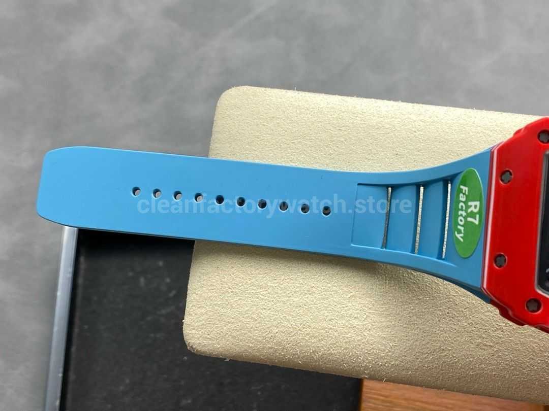 R7 Factory Richard Mille RM35-02 44.5mm Red Carbon Fiber Blue Rubber Strap Skeletonized Dial