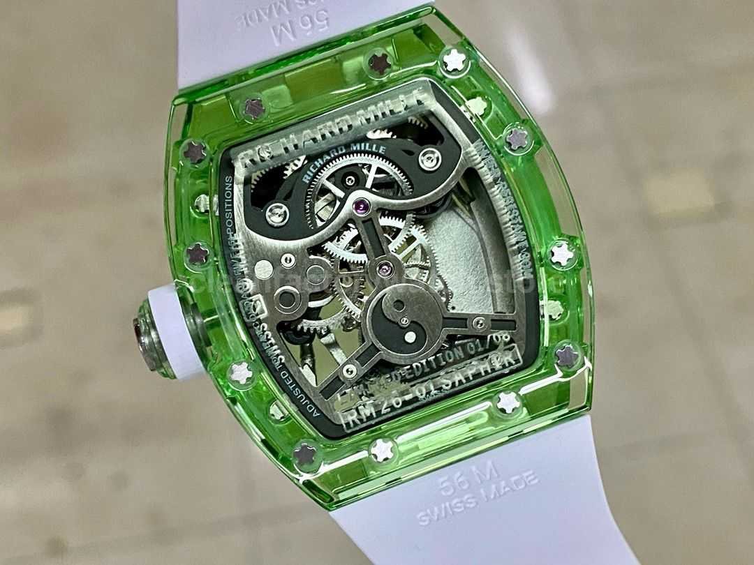 The RM26-01 is equipped with a finely crafted manual-winding tourbillon movement, combined with a dual openworked baseplate design that allows the wearer to admire the mechanism from multiple angles.