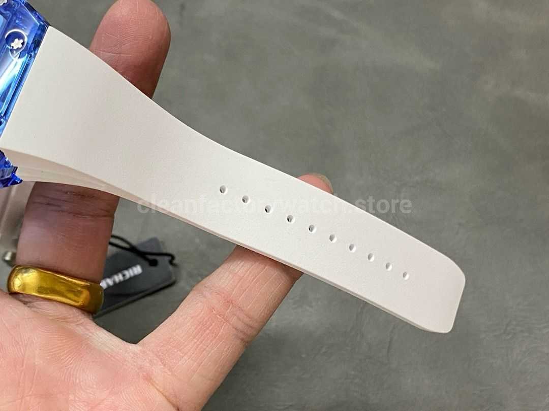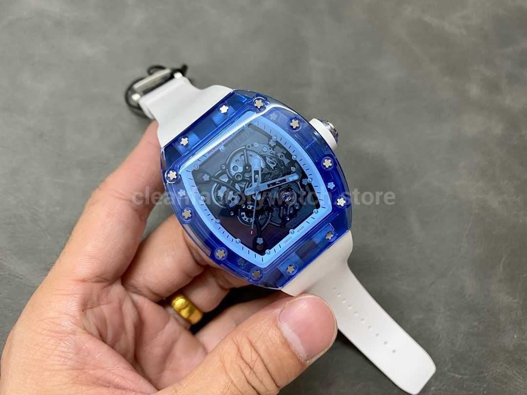 RM Factory Richard Mille RM 055 43mm Blue Crystal White Rubber Strap Skeletonized White Dial