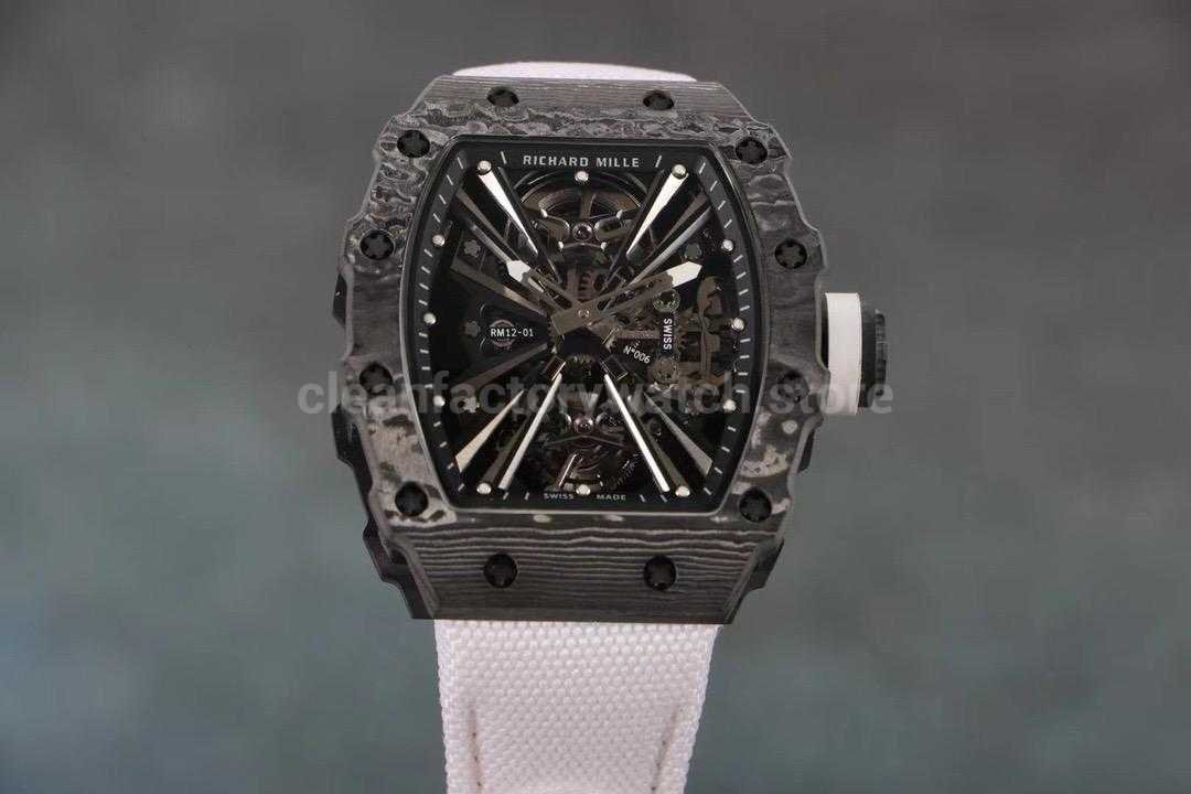 RM Factory Richard Mille RM12-01 Black Carbon Fiber White Canvas Strap Skeletonized Black Dial