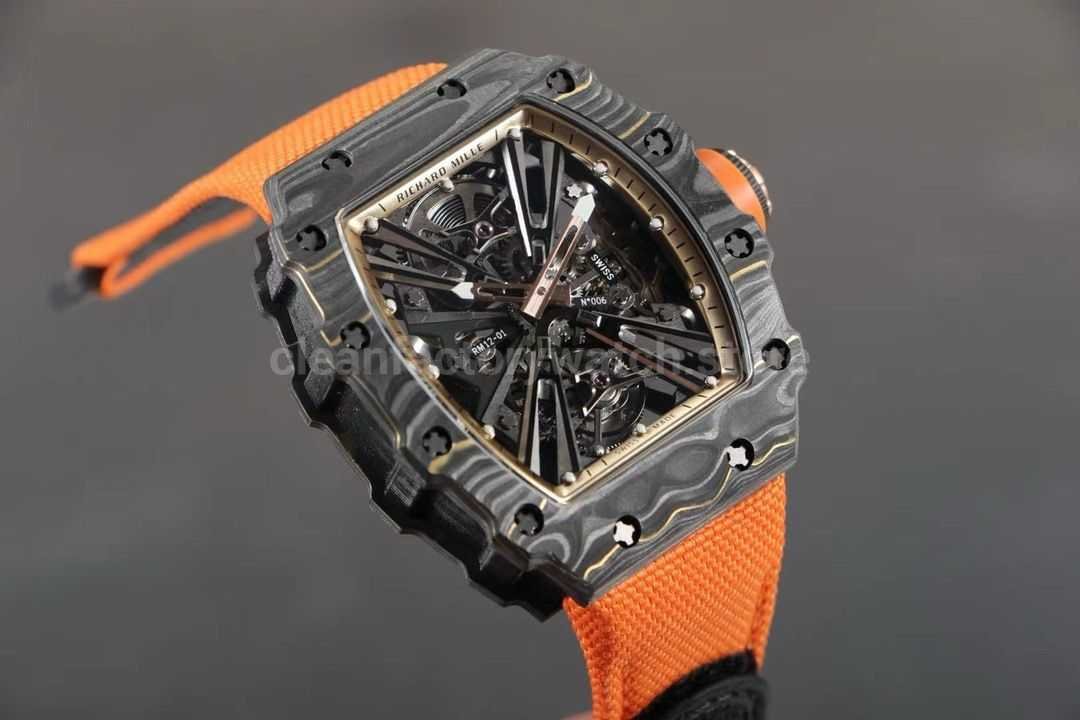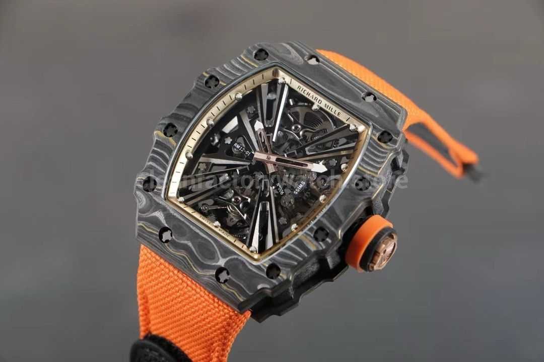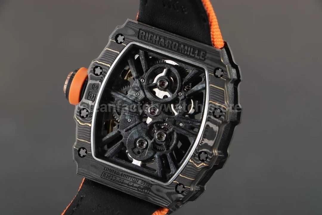 RM Factory Richard Mille RM12-01 Carbon Fiber Orange Canvas Strap Skeletonized Rose Gold Dial