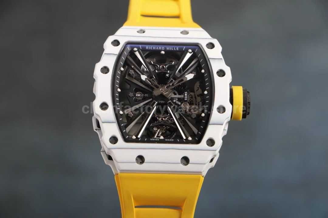 RM Factory Richard Mille RM12-01 Carbon Fiber Yellow Rubber Strap Skeletonized Black Dial