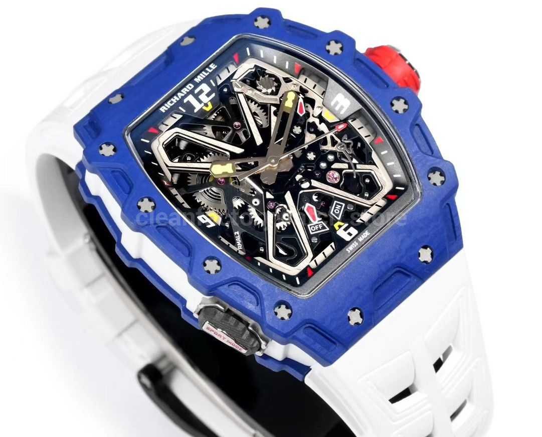 RM Factory Richard Mille RM35-03 Blue Carbon White Rubber Strap Black Skeletonized Dial