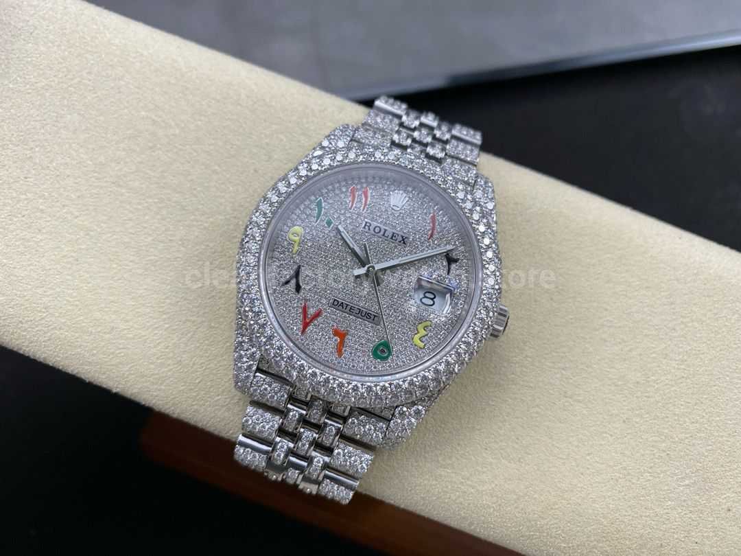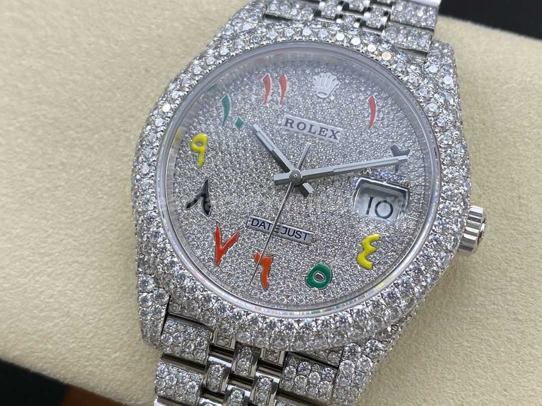 Customized Rolex Datejust | Fully Paved Moissanite Middle Eastern Dial – 41mm