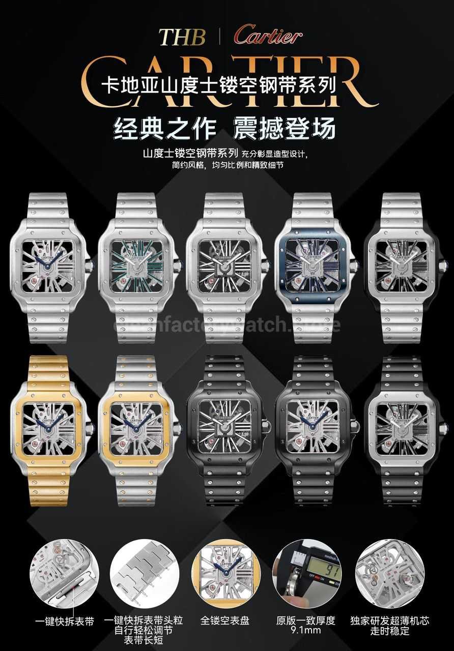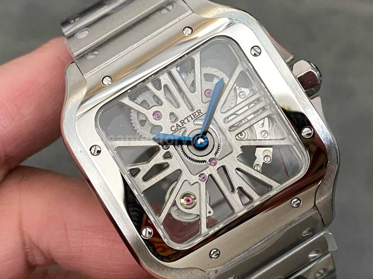 This THB factory Cartier Santos Skeleton Watch exemplifies high-end replica standards, with a stable movement, skeleton craftsmanship, and quick-release strap design. It is an ideal choice for watch enthusiasts who prioritize both quality and aesthetics.