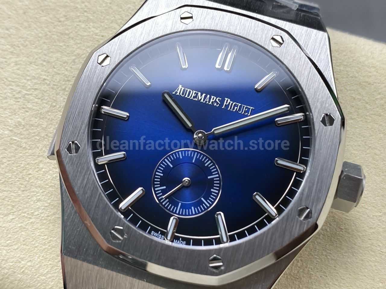 5.Textured Dial Excellence: Features a deeply embossed “Grande Tapisserie” waffle texture, paired with luminous white gold hour markers and the iconic Royal Oak hands — delivering clarity and sophistication day or night.