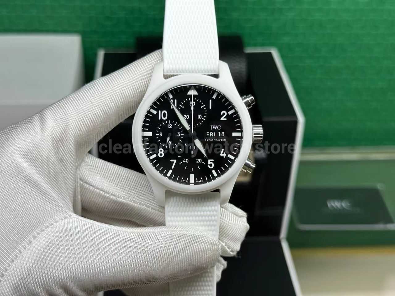 TW Factory IWC Pilot Chronograph Top Gun IW389105 44.5mm Ceramic White Rubber Strap Arabic Numerals Black Dial