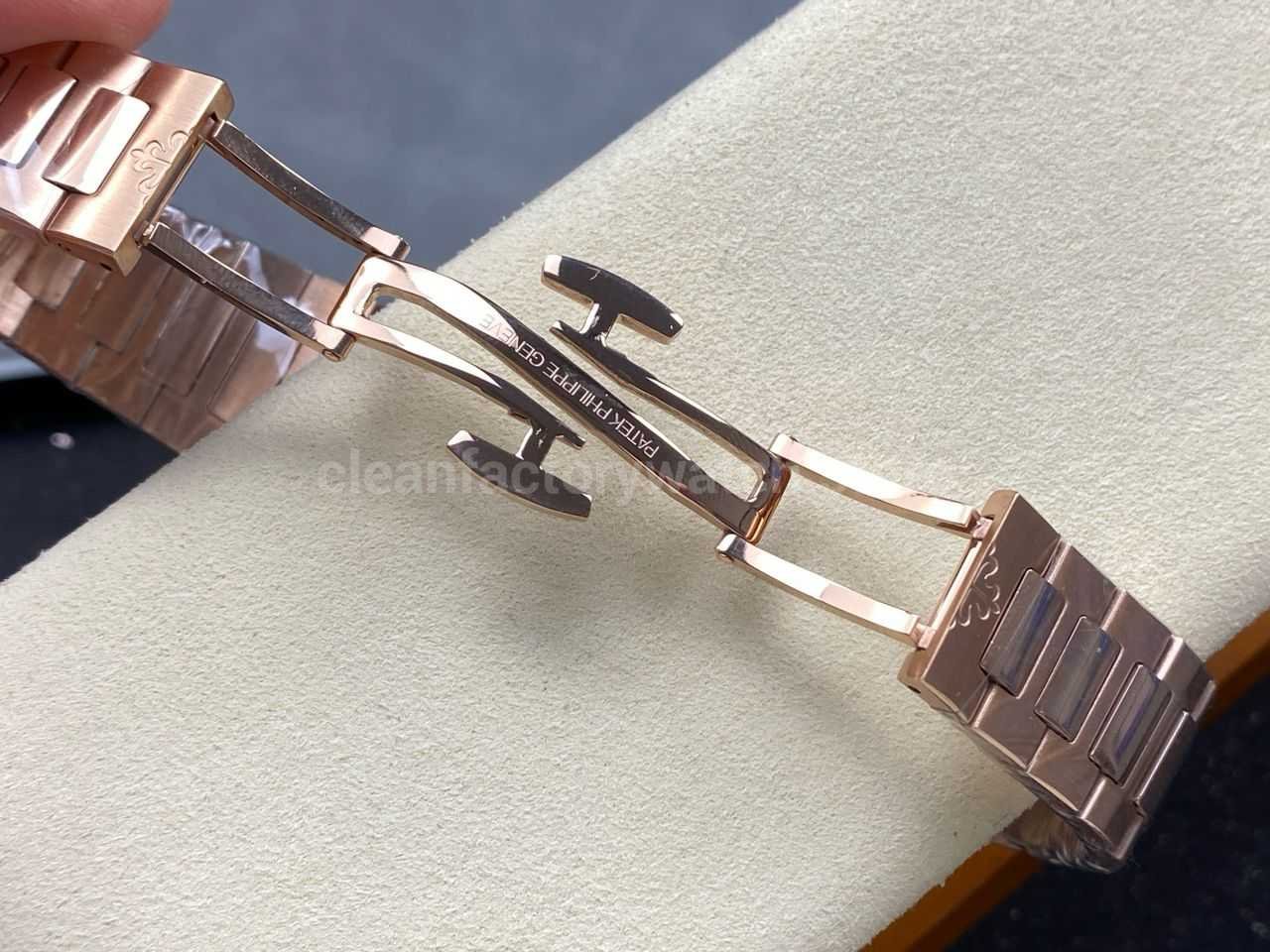 Measuring 35.2mm, the Nautilus case features distinctive side contours. The bracelet showcases a harmonious blend of brushed and polished surfaces, with each edge finely chamfered and polished into a smooth arc. The integration between lugs and bracelet is seamless, ensuring a comfortable and elegant fit on the wrist.