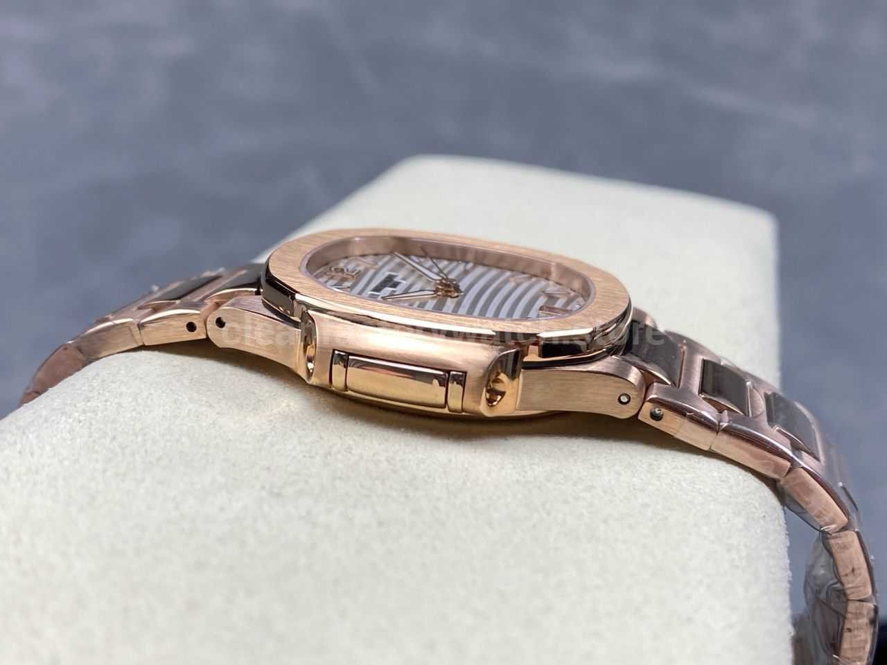 Elegance to the extreme. This latest masterpiece from TW brings the iconic Patek Philippe Nautilus 7118 to life, exquisitely tailored for modern professional women. With its signature porthole-shaped case and flowing wave-patterned dial, it radiates refined charm and timeless style.