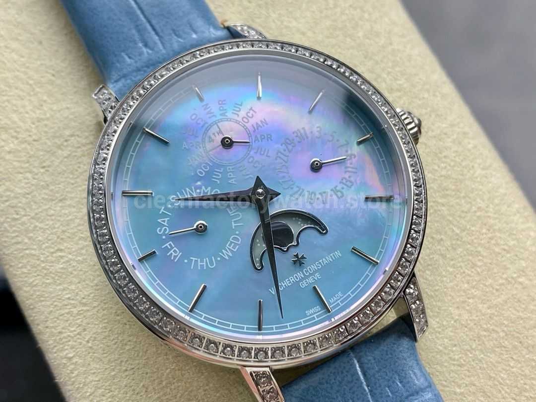 TW Factory Vacheron Constantin Traditionnelle Perpetual Calendar Ultra-Thin 4305T/000G-B948 Steel Blue Leather Strap Mother Of Pearl Dial