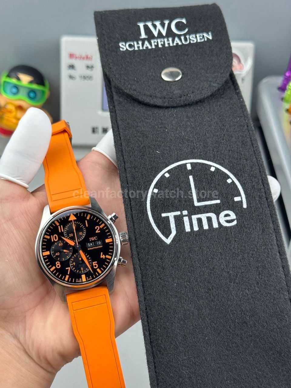 TWS Factory IWC Pilot Chronograph IW377730 41mm Orange Rubber Strap Orange Arabic Numerals Black Dial