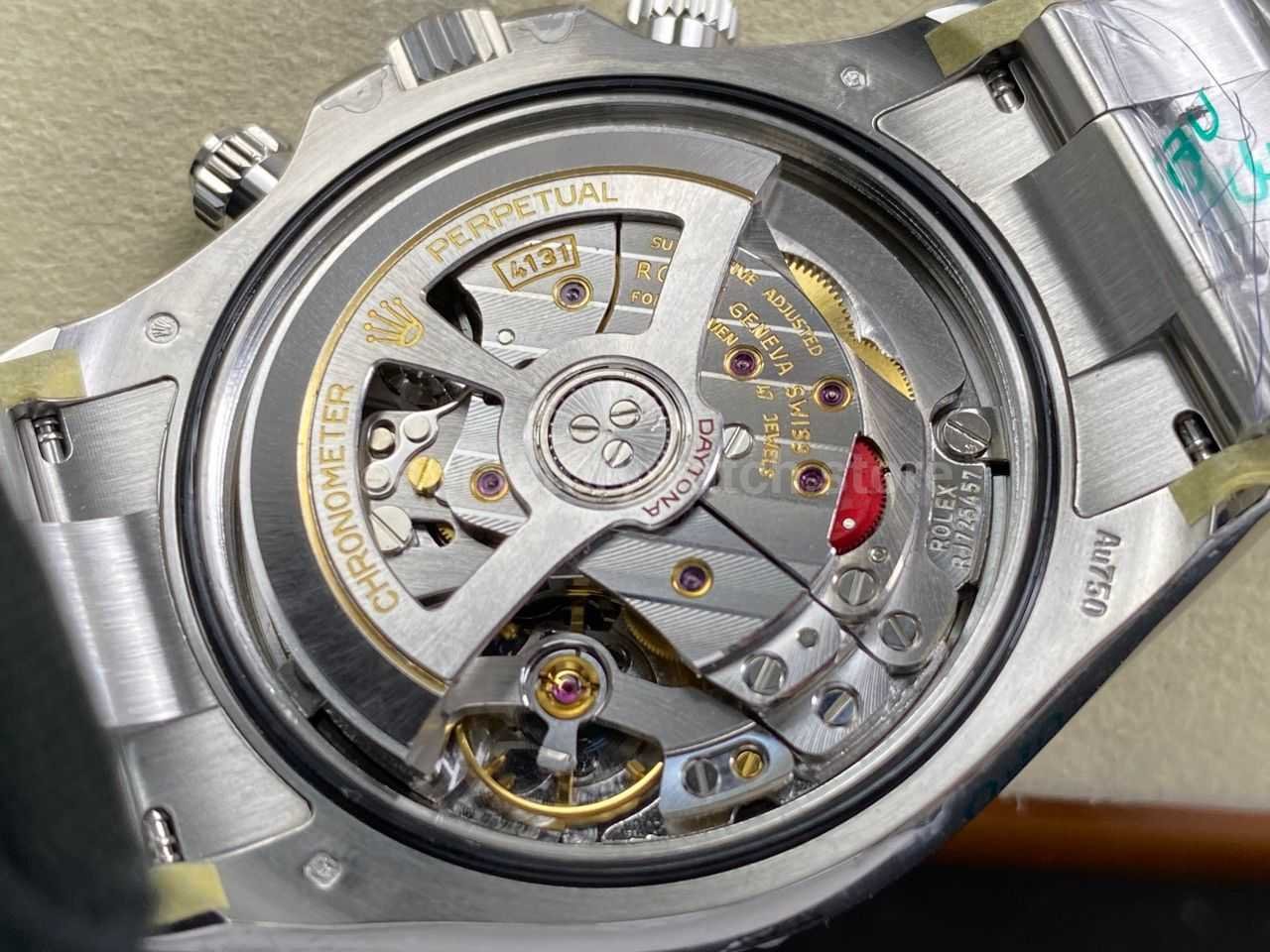 Unlike traditional regulating-arm designs, this structure removes obvious visual tells inside the movement, resulting in a layout that is far closer to the genuine 4131 when viewed through the caseback.