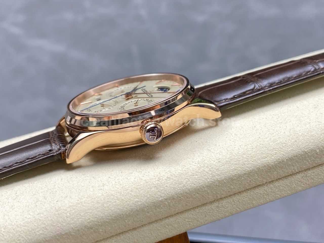 The V9 Factory Jaeger-LeCoultre Master Ultra Thin Perpetual Calendar delivers the essence of haute horology in a 39mm case – refined, versatile, and mechanically impressive. With its complete perpetual calendar functions, faithful aesthetics, and enhanced usability, this replica stands as one of the most collectible and wearable complex timepieces in the market today.