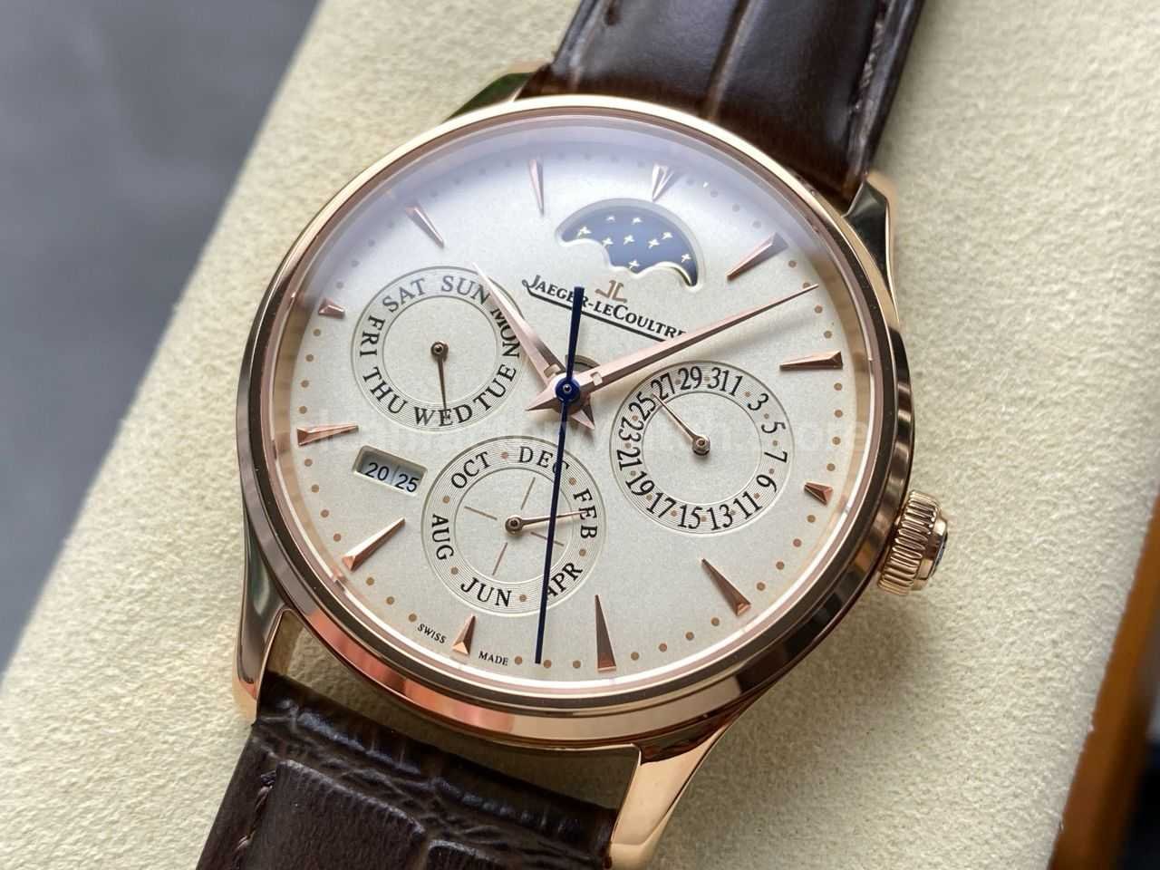 V9 Factory Jaeger-LeCoultre Master Ultra Thin Perpetual Q1302520 Rose Gold White Dial