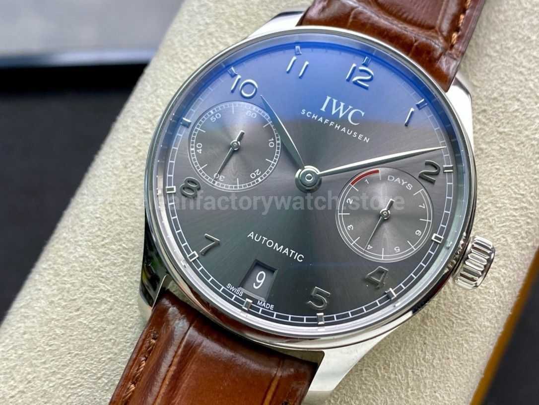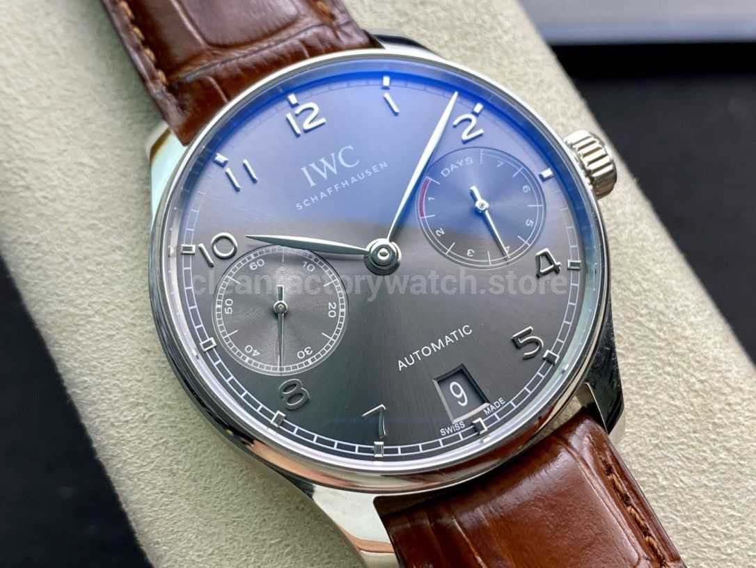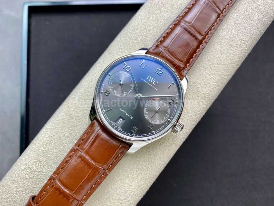 ZF Factory IWC Portuguese Automatic IW500106 42mm Steel Leather Strap Arabic Numerals Grey Dial