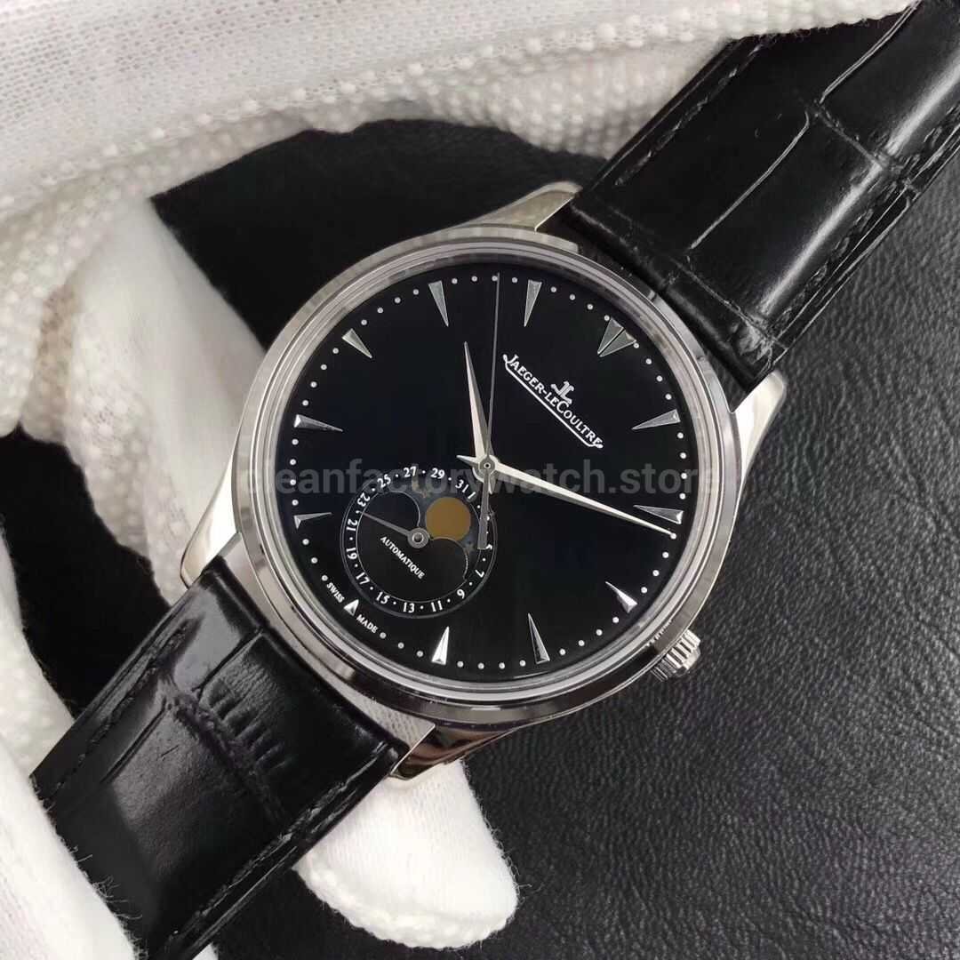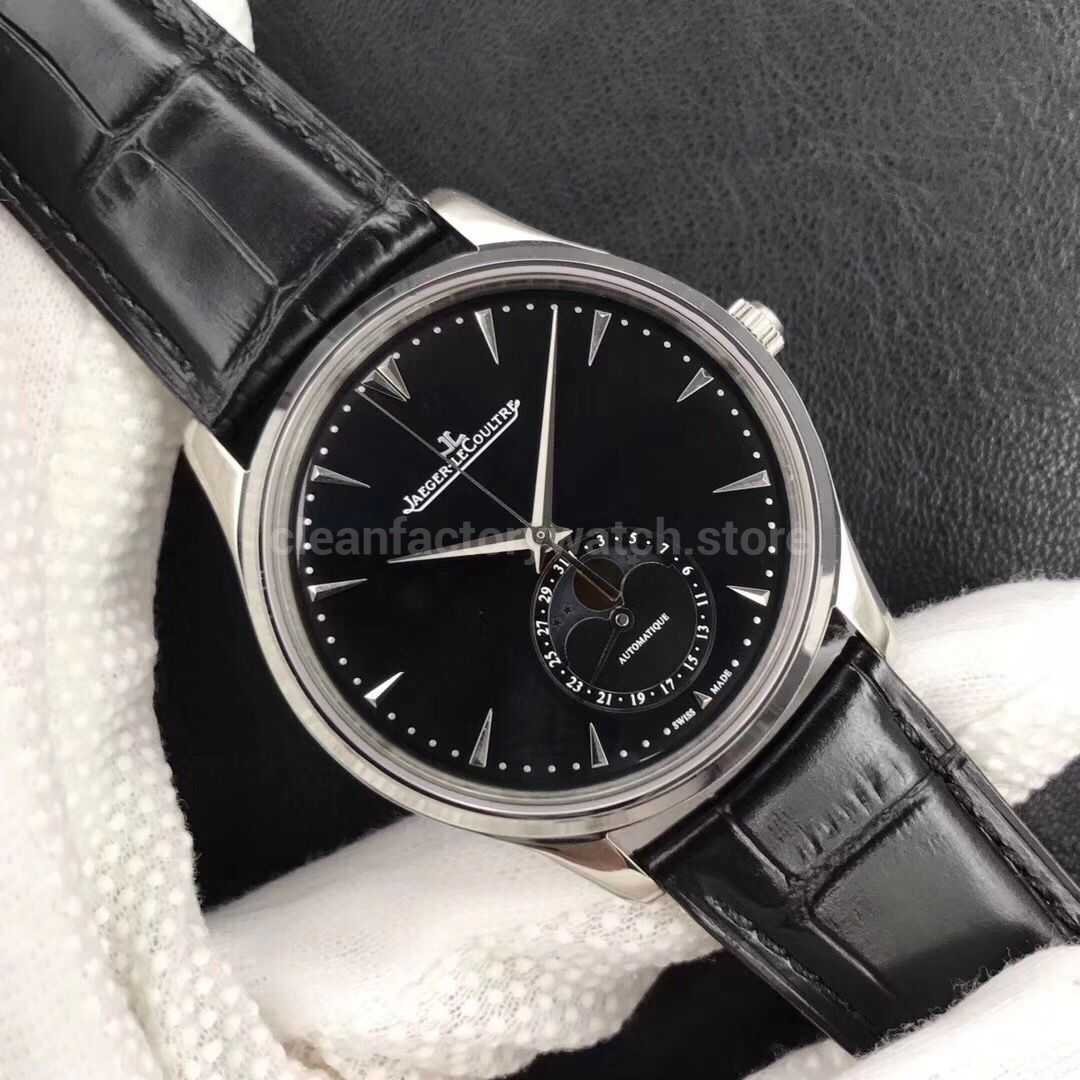 ZF Factory Jaeger-LeCoultre Master Ultra Thin Moon Q1368470 39mm Steel Leather Strap Black Dial